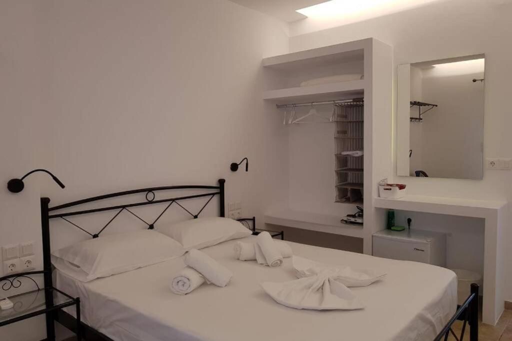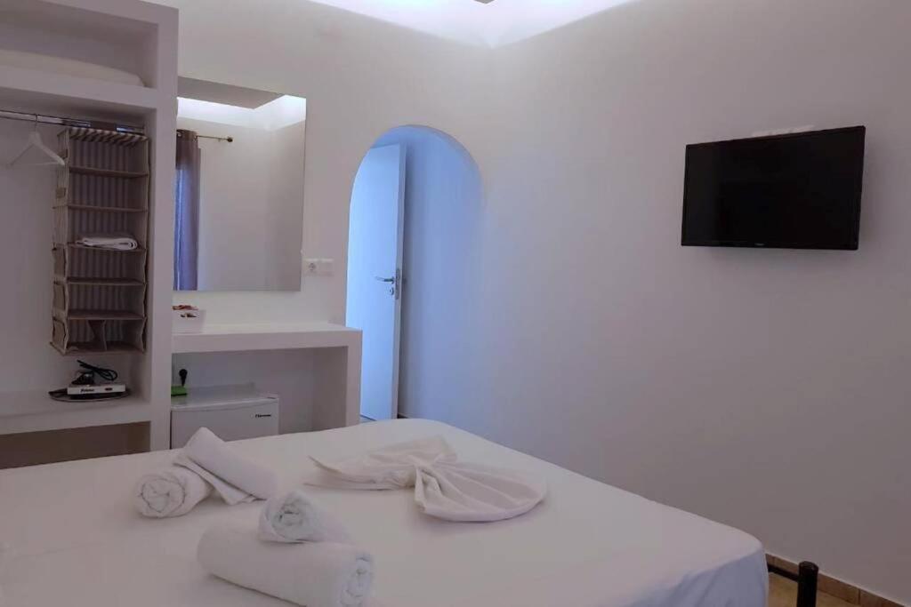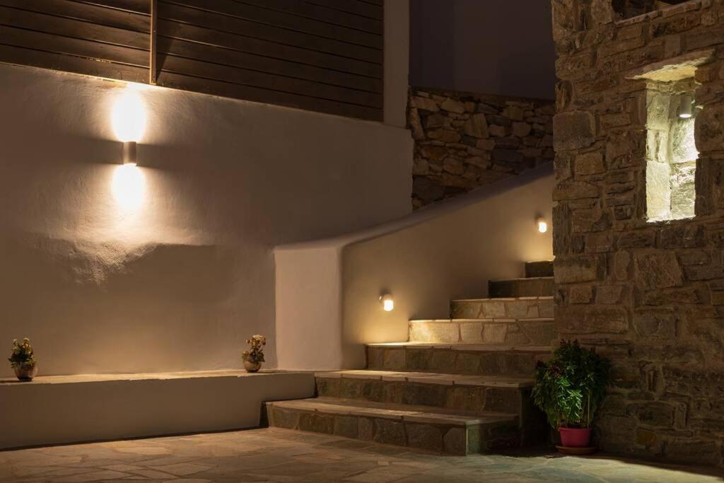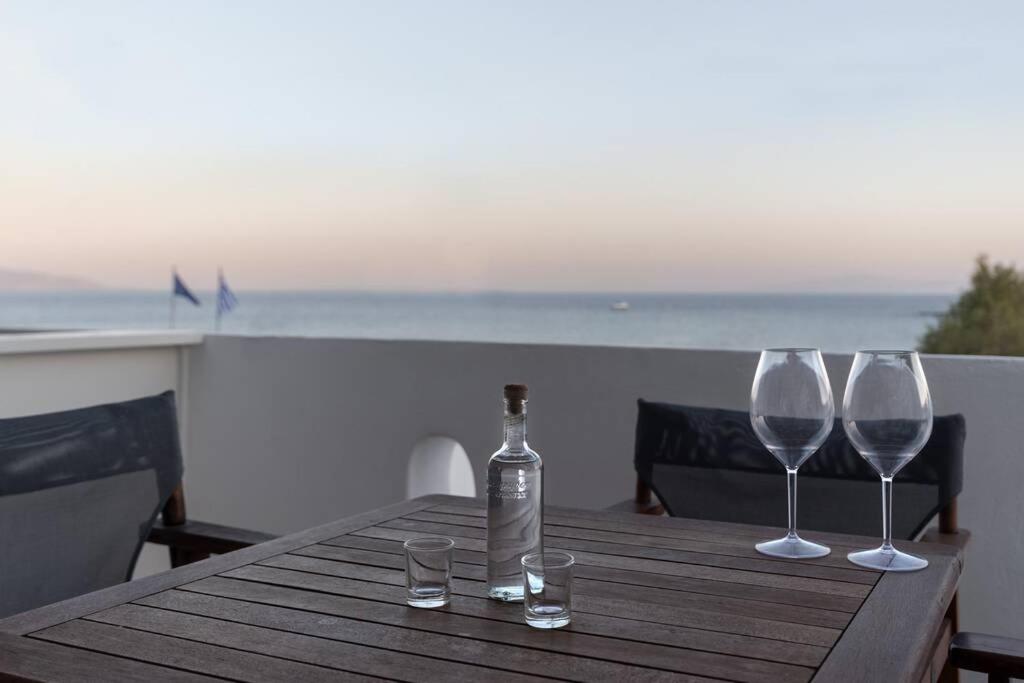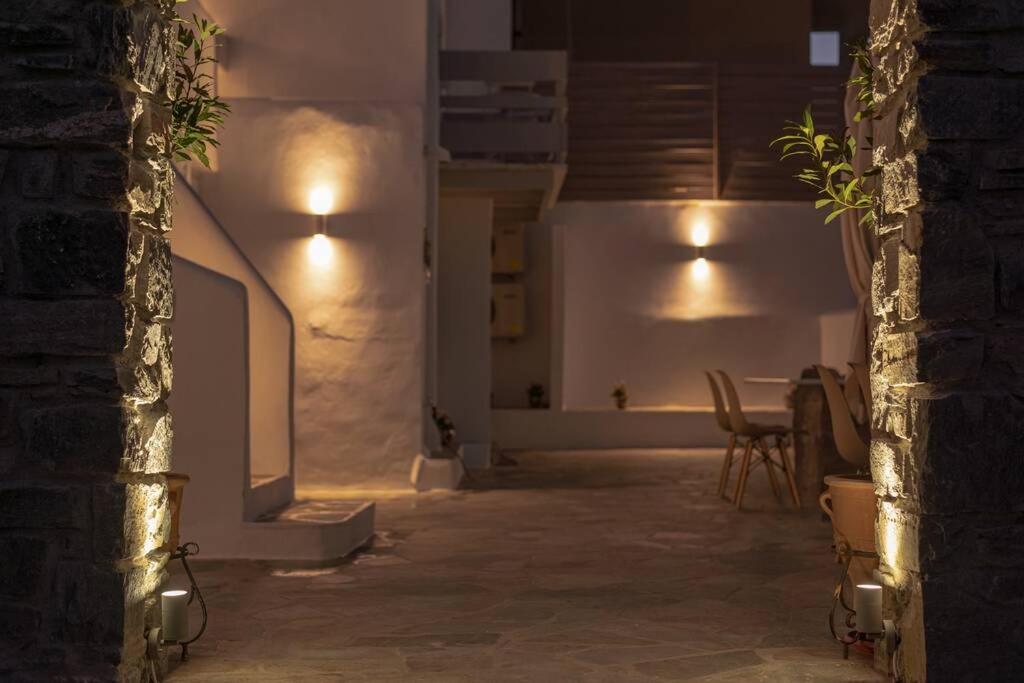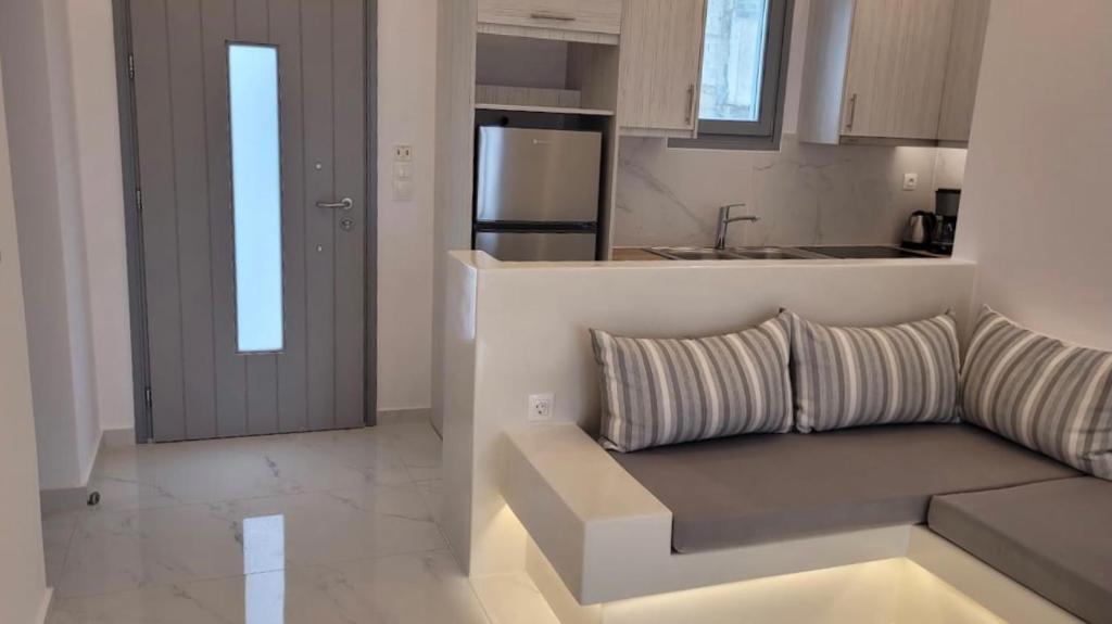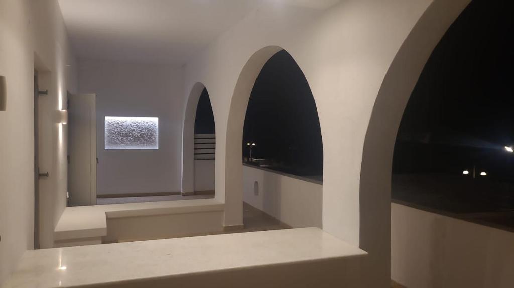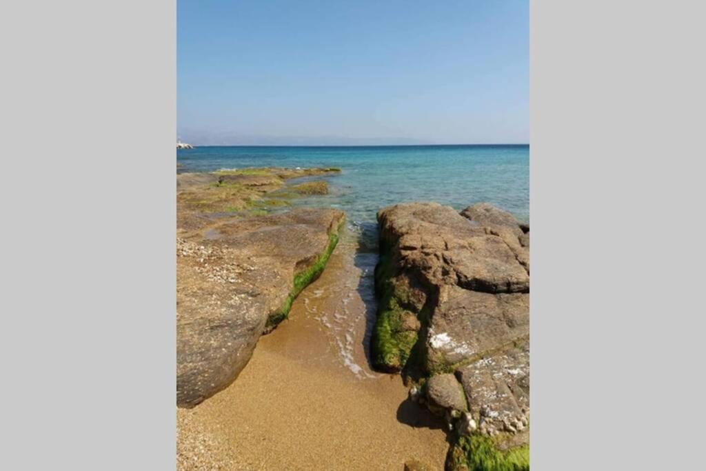 Il balcone frontale molto grande (40 mq) è perfetto per riunioni di amici o familiari, colazione, lettura di un libro, relax e soprattutto guardare il sole che sorge e tramonta sullo splendido mare Egeo proprio di fronte ai locali. Ha anche un grande tavolo da pranzo in marmo dove tutti gli ospiti possono riunirsi per pranzo e cena di fronte alla bellissima spiaggia di Logaras. Nel patio sul retro dei locali è possibile trovare tavoli e sedie dove è possibile rilassarsi e godersi il sole, nonché uno spazio per esercitarsi a cui è possibile accedere e condividere con altri ospiti HH. L'atmosfera ei grandi tavoli sono perfetti per pranzare/cenare lì, per fare lunghe discussioni o godersi una brezza notturna sotto le stelle. C'è una scala con 9 gradini che conduce all'ingresso dell'appartamento.