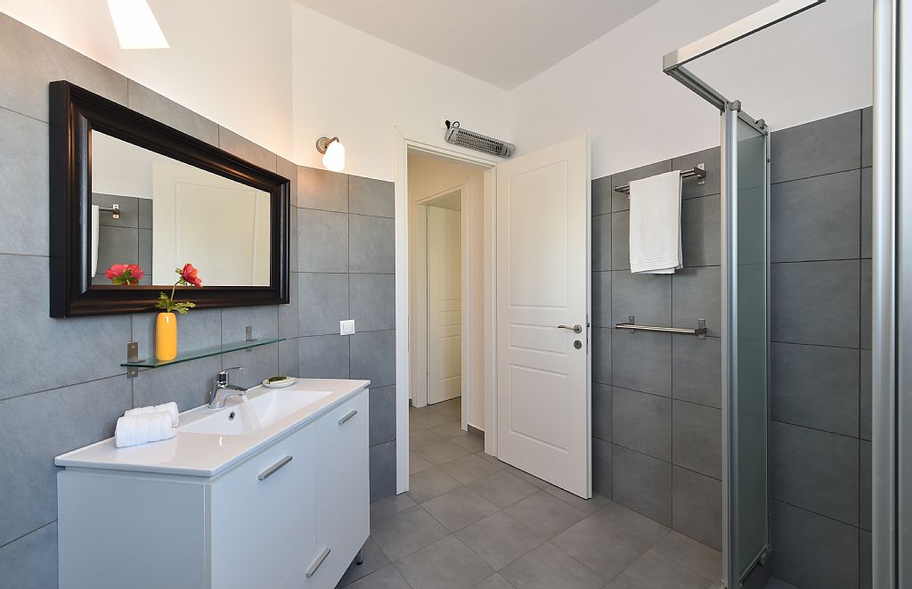 Gli ospiti possono accedere al secondo piano da entrambe le scale (interna o  esterna), che portano in un altro ingresso di questa villa. Il secondo piano ospita due camere da letto (entrambe con letti matrimoniali) e un bagno. Entrambe le camere sono dotate di terrazze con vista mozzafiato sul mare e villaggi vicini.
