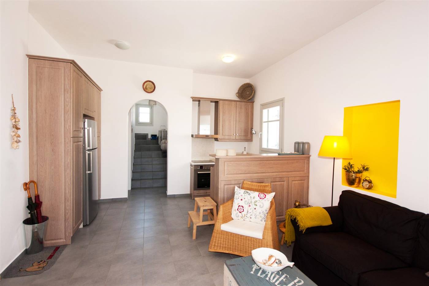 E' una villa di 120 mq a  due piani con vista sul mare e può ospitare fino a 6 persone. Entrando nella villa dall'ingresso principale al piano terra, è possibile trovare una camera spaziosa unita in cui il soggiorno e la cucina si trovano. Da qui è possibile accedere alla bellissima terrazza con comodi divani dove potersi rilassare e guardare il mare e il giardino fiorito. Nello stesso piano ci sono anche bagno degli ospiti (WC) e la camera da letto (una matrimoniale) con bagno privato .