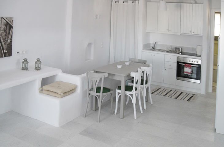 Con una vista mozzafiato sul Mar Egeo, il complesso si fonde armonicamente nell'ambiente naturale e residenziale del paesaggio delle Cicladi. Tutte le strutture sono state progettate con un grande rispetto per l'architettura cicladica tradizionale, la cura personale e una disposizione amichevole verso l'ospite.