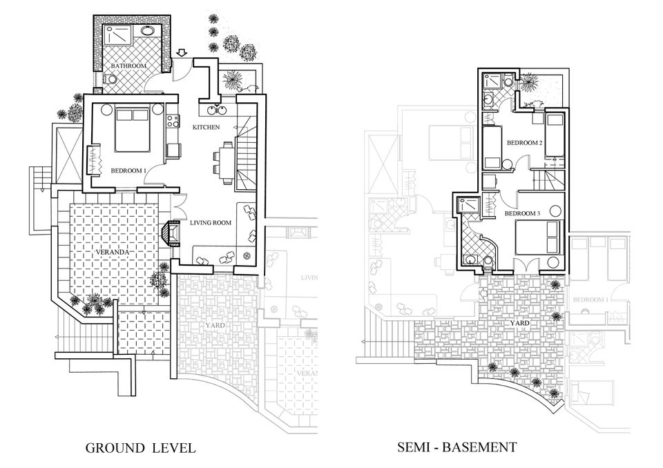 Gli interni seguono lo stesso concetto di semplicità ed eleganza e sono arredate con gusto e dotate di tutti i comfort moderni. Le grandi verande private con la splendida vista vi farà sicuramente sentire a vostro agio, rilassato e divertirvi.