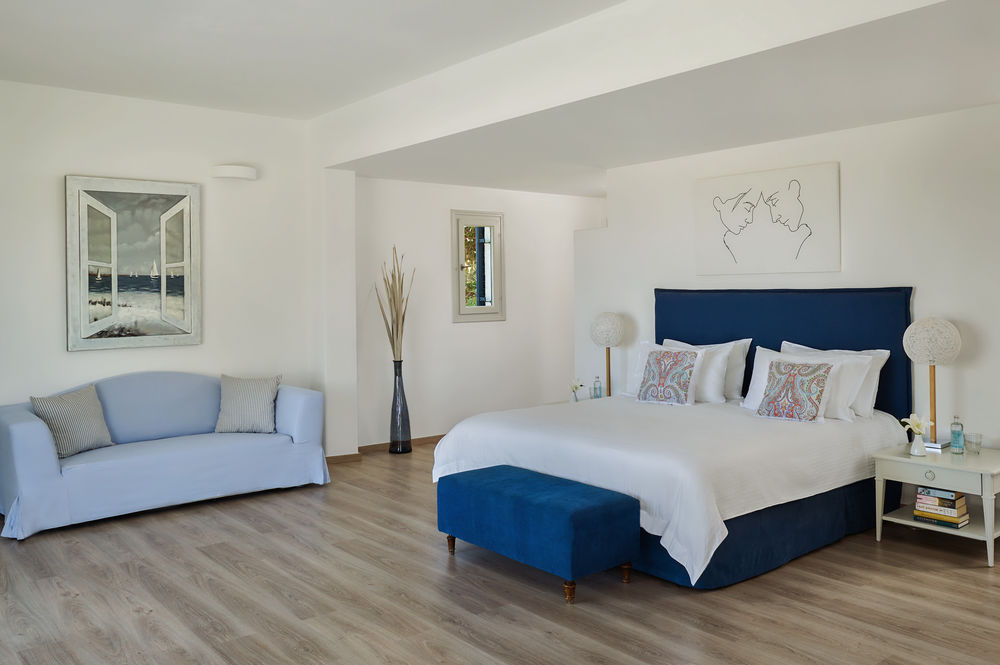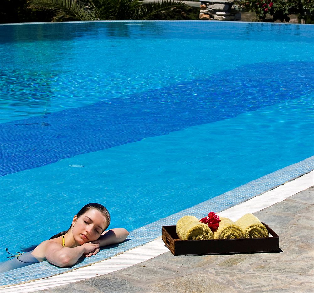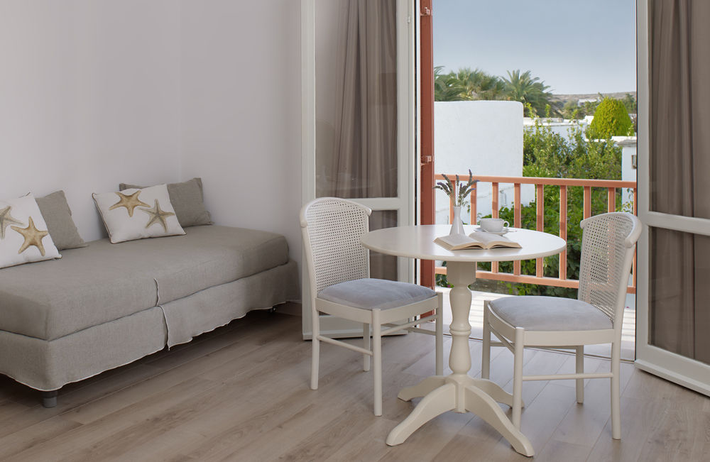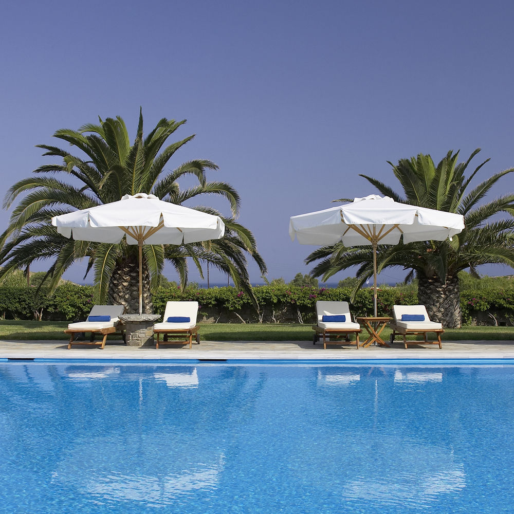 L'Yria sorge a soli 100 metri dalla baia di Parasporos, dove troverete un'incantevole spiaggia lambita dalle acque cristalline del Mar Egeo.