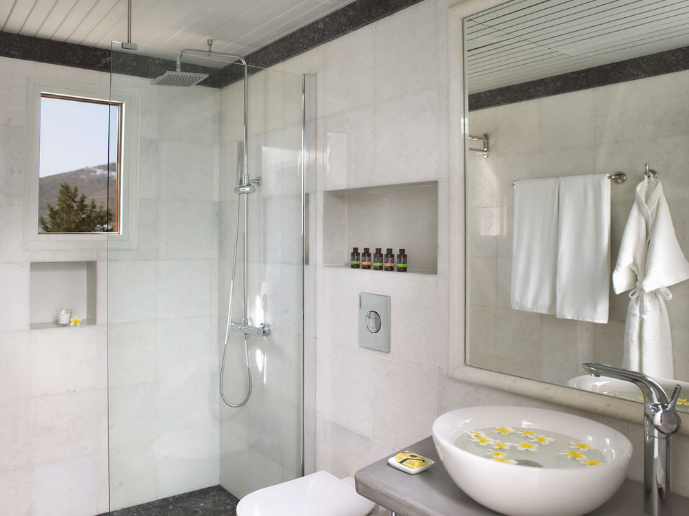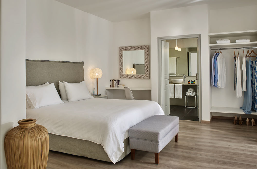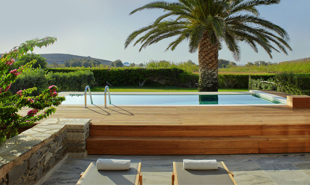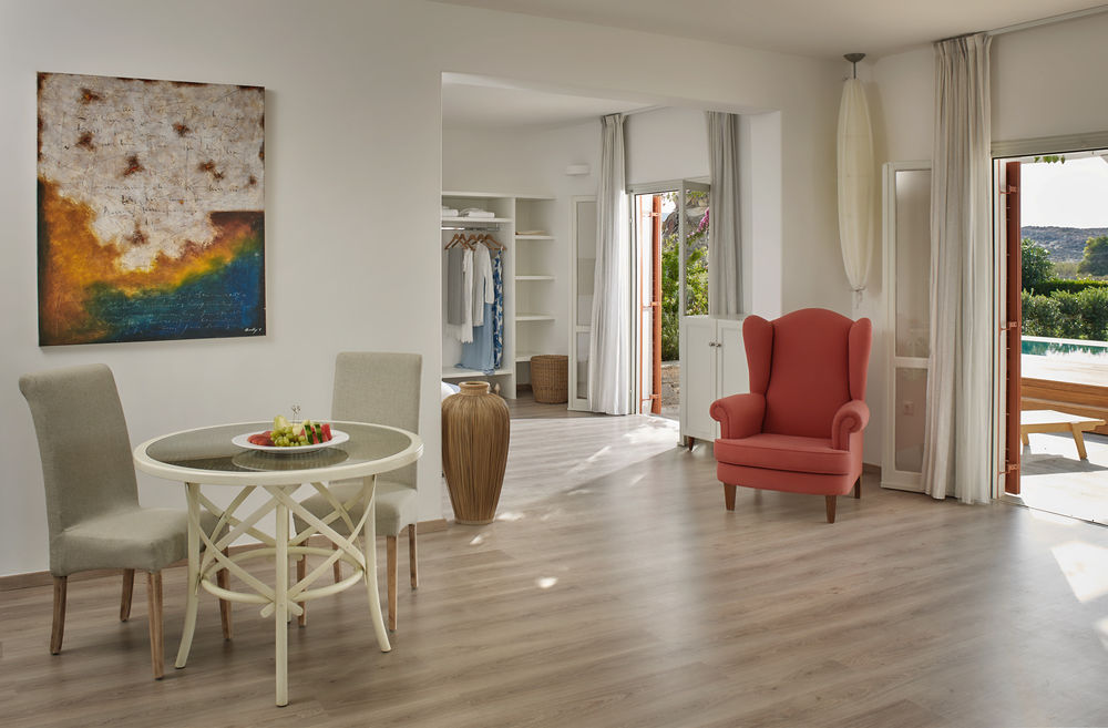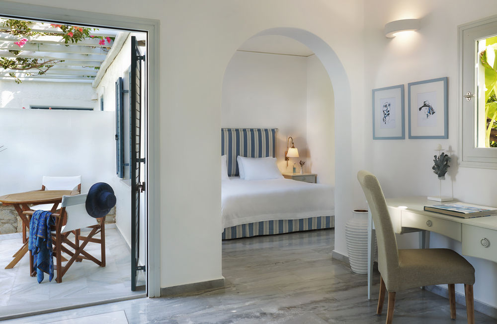 L'Yria sorge a soli 100 metri dalla baia di Parasporos, dove troverete un'incantevole spiaggia lambita dalle acque cristalline del Mar Egeo.
