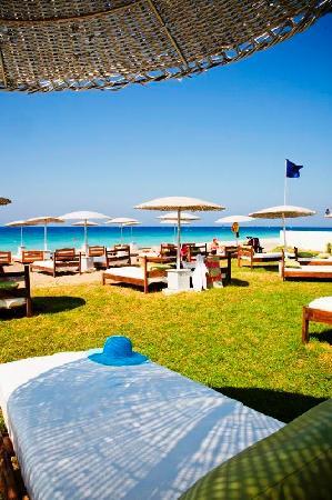 La vicina spiaggia è di sabbia e viene fornito con sedie a sdraio e ombrelloni.  Alcuni servizi a pagamento.