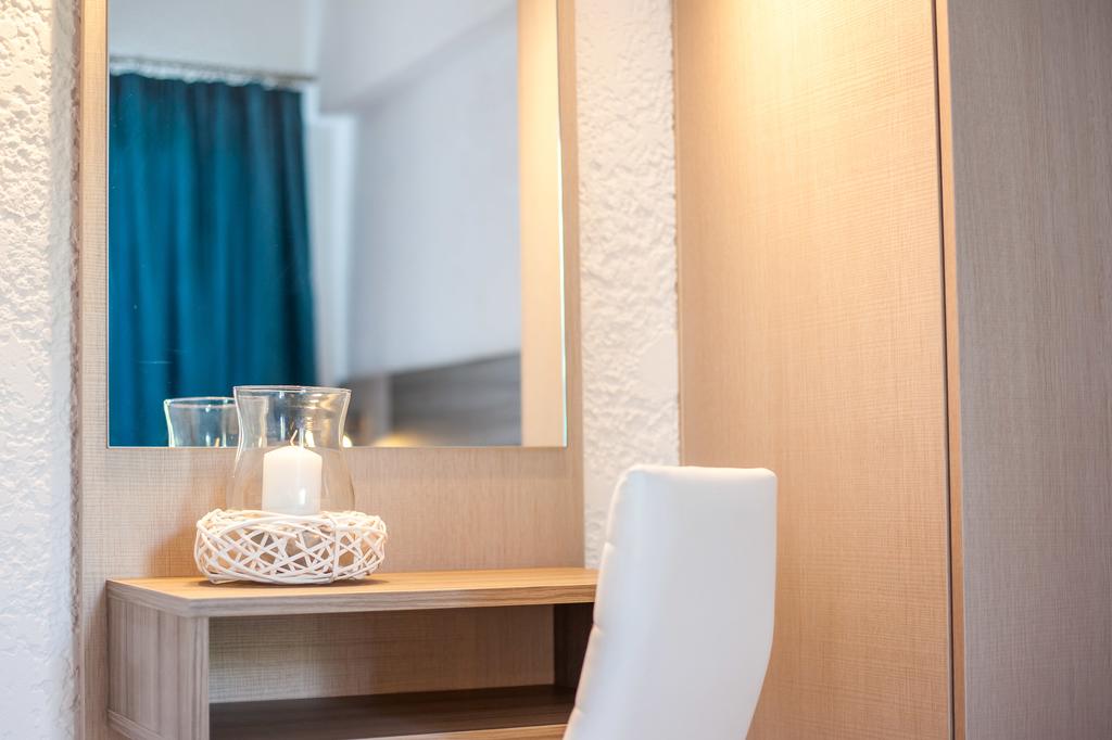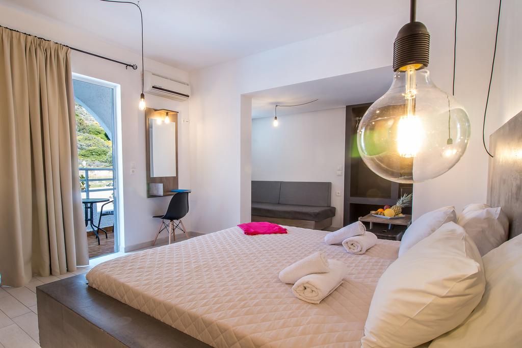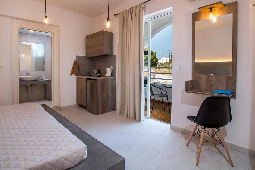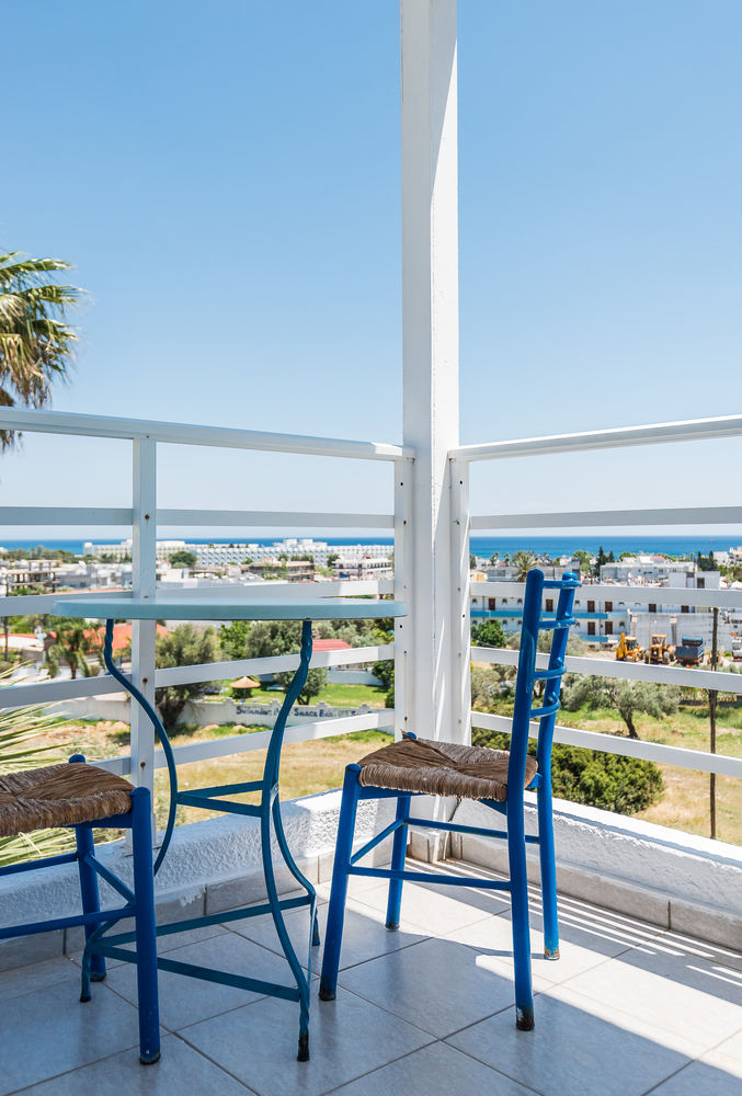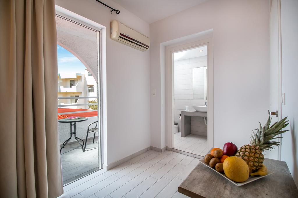 Tutti gli appartamenti sono luminosi e spaziosi, dotati di balcone con vista mare o vista piscina e bagno privato con doccia. Aria condizionata presente in tutti gli studios, a pagamento.