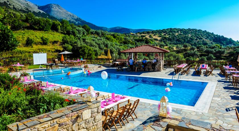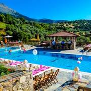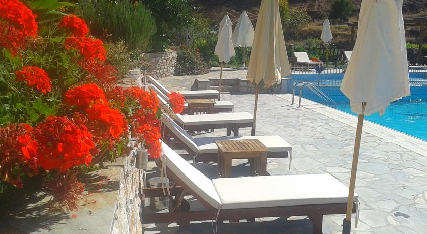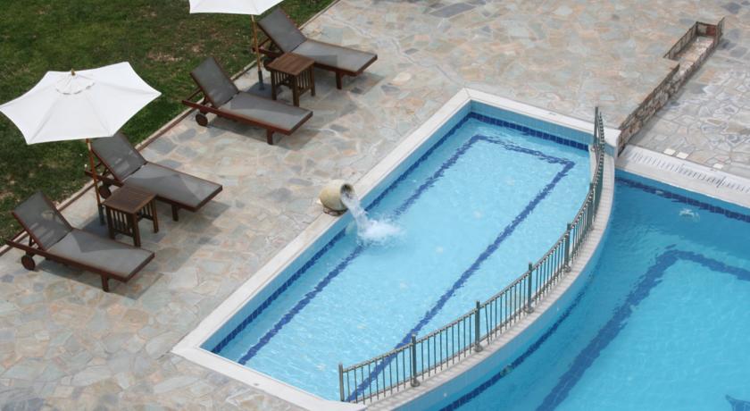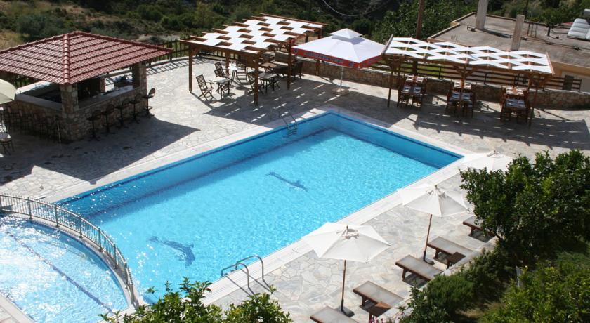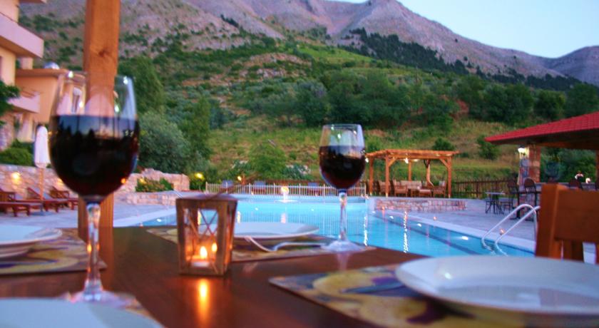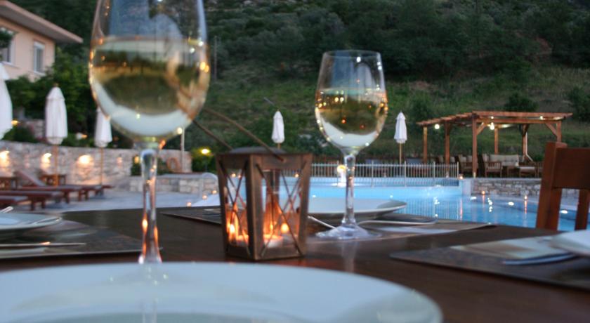 Potrete gustare la colazione, il pranzo e la cena a bordo piscina oppure nel ristorante in loco, che serve piatti della cucina greca a base di ingredienti locali. Il bar propone un'ampia varietà di bevande alcoliche, analcoliche e caffè.