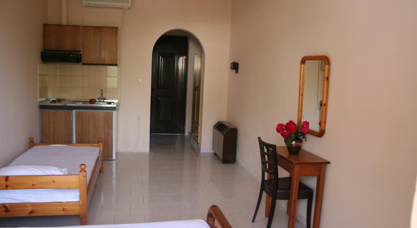 Caratterizzate da ambienti rustici e sobri, le sistemazioni sono dotate di pavimenti piastrellati, soffitti con travi a vista, TV satellitare, angolo cottura con frigorifero e balconi con affaccio sulla maestosa cima dell'Ataviros, sul villaggio e sul tramonto. La connessione Wi-Fi gratuita è disponibile in tutto l'Hotel Ataviros.