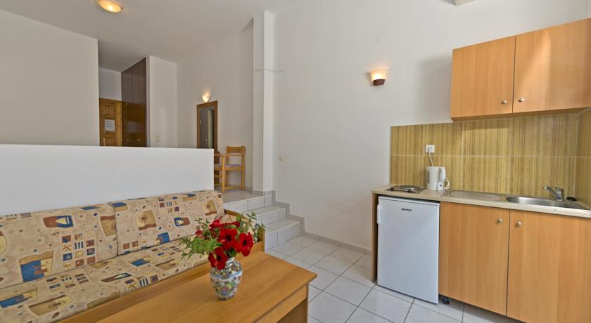 Lo snack bar-ristorante propone piatti greci e internazionali, bevande rinfrescanti e birre, mentre il bar e il bar semi-sommerso vi attendono per un drink serale. A vostra disposizione una terrazza con lettini e ombrelloni gratuiti, una piscina dedicata ai più piccoli e la connessione WiFi in omaggio nelle aree comuni, mentre il personale della struttura sarà lieto di organizzare per voi il noleggio di auto/biciclette.