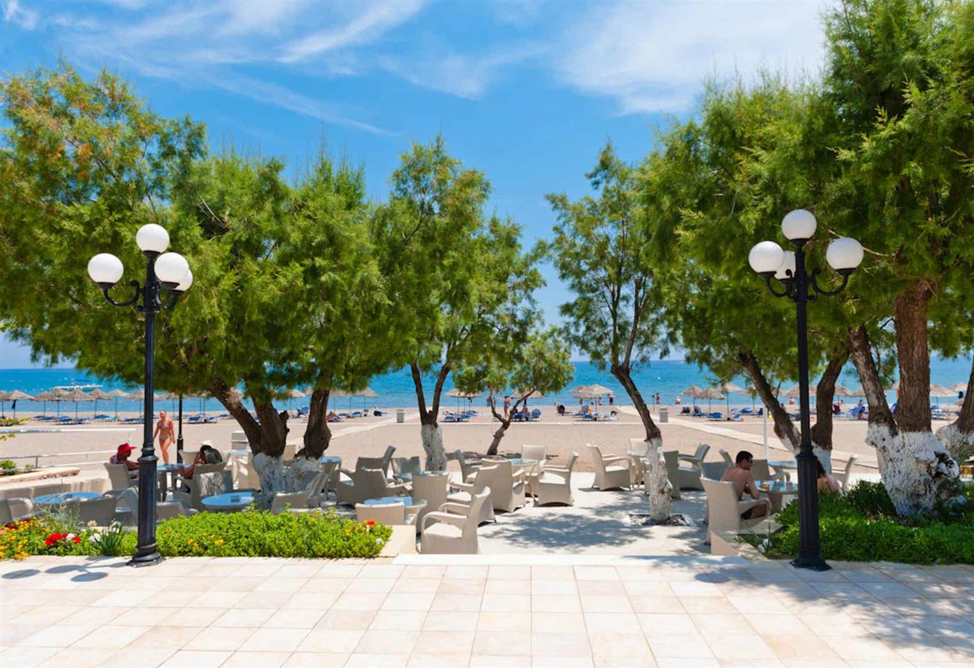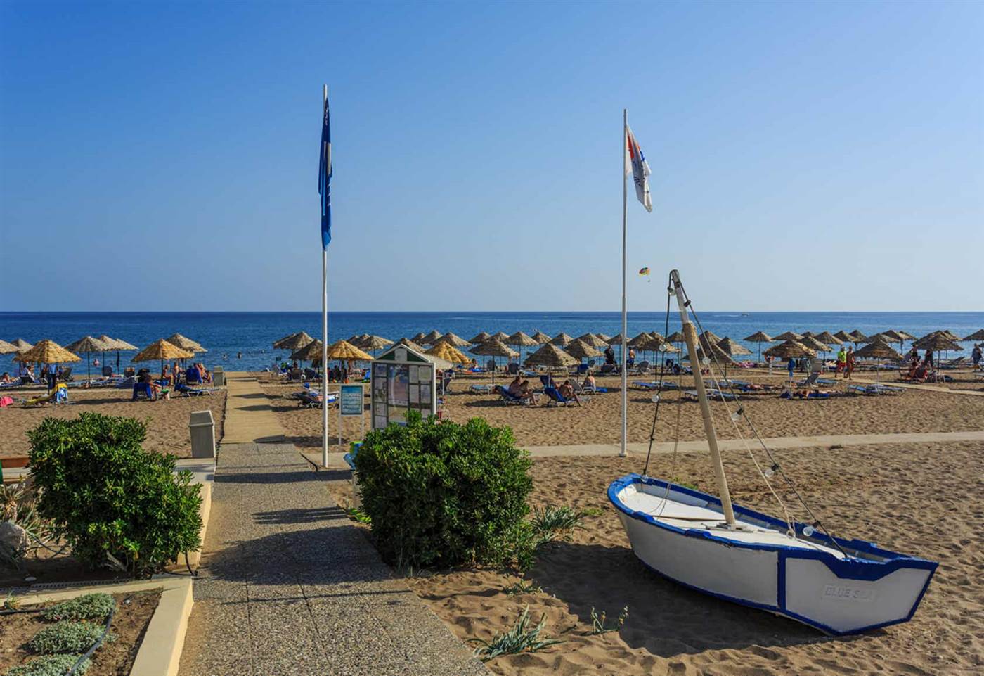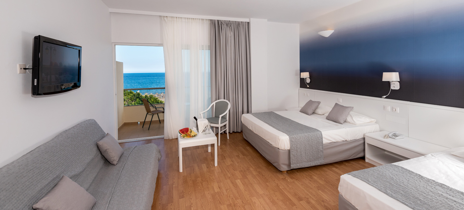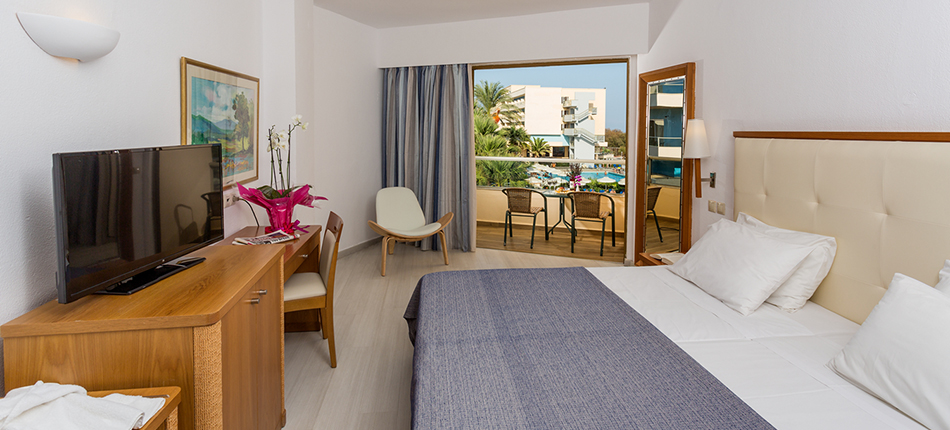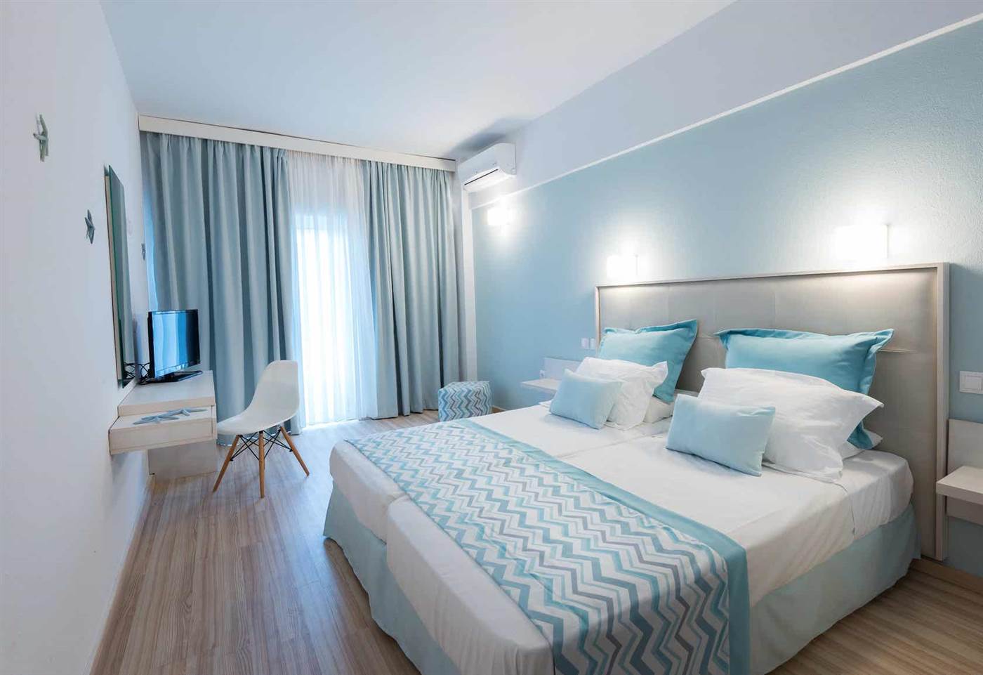 Le spaziose camere del Blue Sea Beach dispongono di minibar, TV satellitare e pay TV. Sono tutte dotate di bagno interno con asciugacapelli e articoli da toeletta. L'aria condizionata è disponibile durante la stagione estiva.