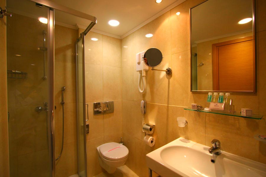 Tutte le camere sono dotate di bagno con doccia o vasca, TV satellitare, asciugacapelli, telefono, aria condizionata dal 15/6 al 30/9, balcone / terrazzo e mini frigorifero. Alcune camere sono dotate di vasca idromassaggio Jacuzzi privata.