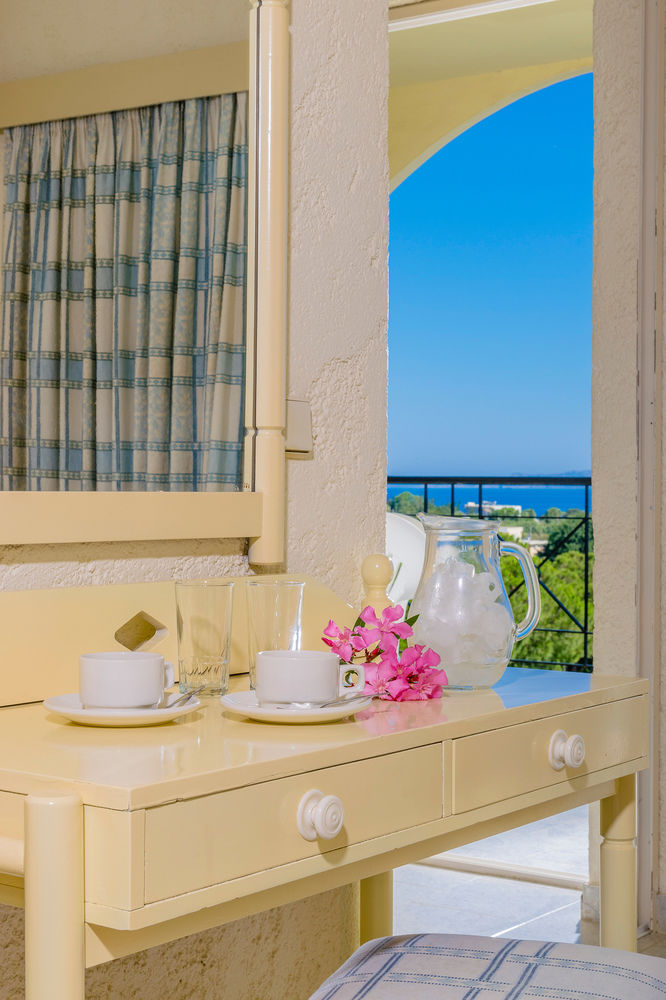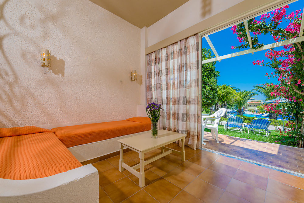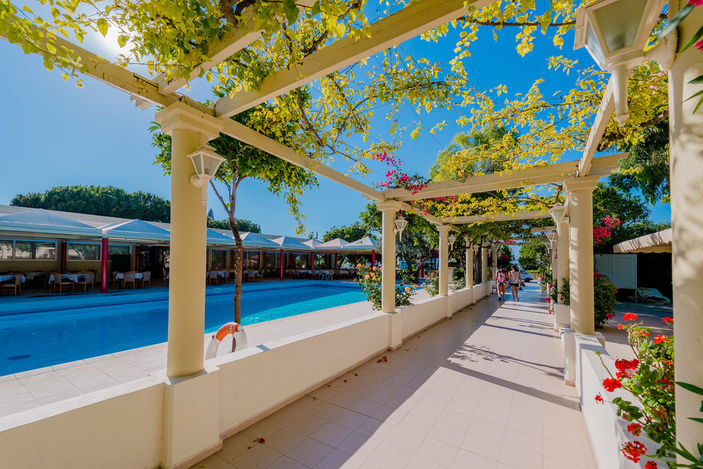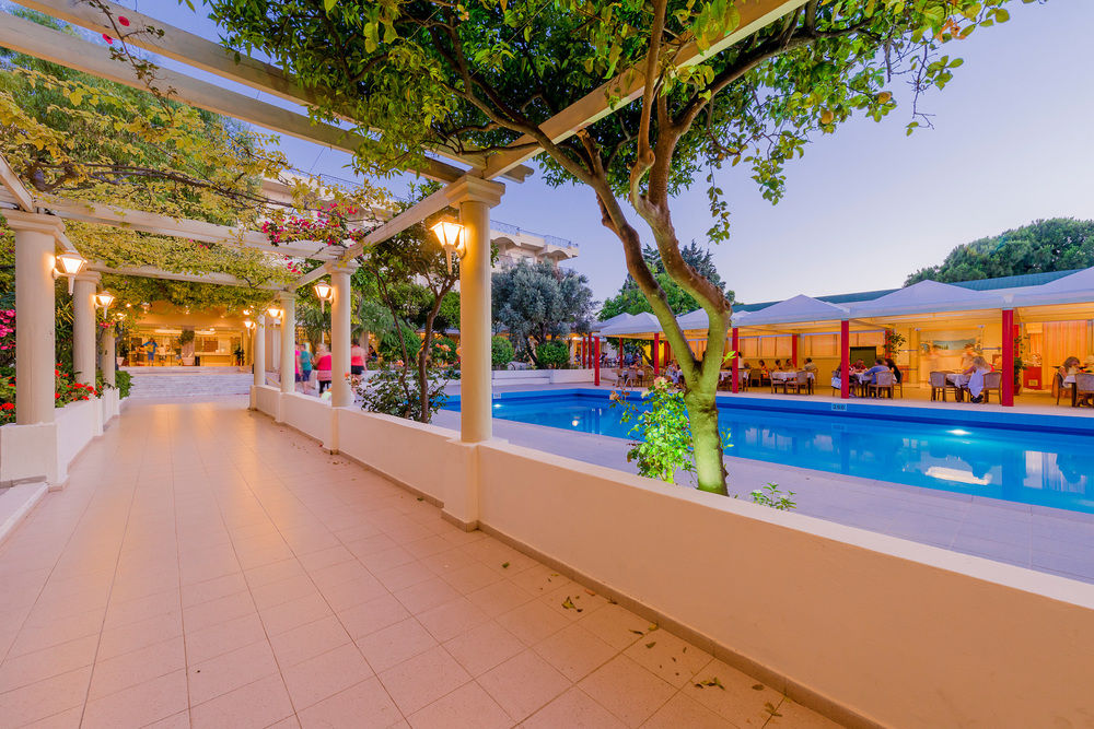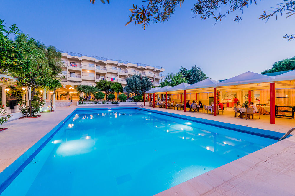 Potrete iniziare la giornata nell'area ristorazione con una colazione inglese completa o a buffet. Il ristorante propone piatti della cucina greca e mediterranea da gustare presso la piscina, il cui bar serve caffè e bevande per l'intera giornata.