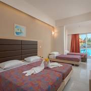 Potrete iniziare la giornata con una colazione all'americana, sorseggiare caffè, bevande e cocktail presso il bar di fronte alla piscina, e infine gustare il pranzo e la cena in stile buffet, a base di piatti greci e internazionali.