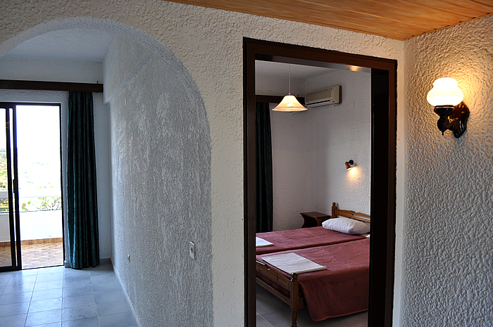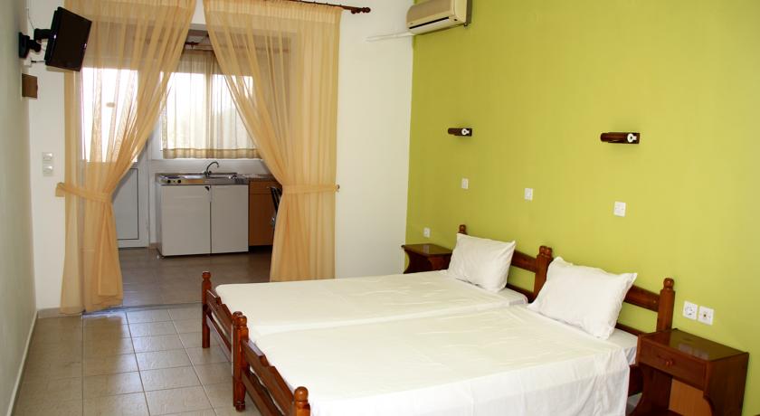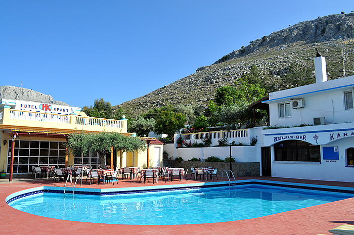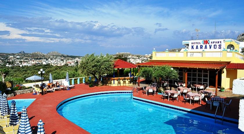 Situata su una collina verdeggiante, la struttura a conduzione familiare Karavos Hotel Apartments offre una piscina, un ristorante greco e monolocali e appartamenti con balcone affacciato sugli uliveti e sul paese di Archangelos.