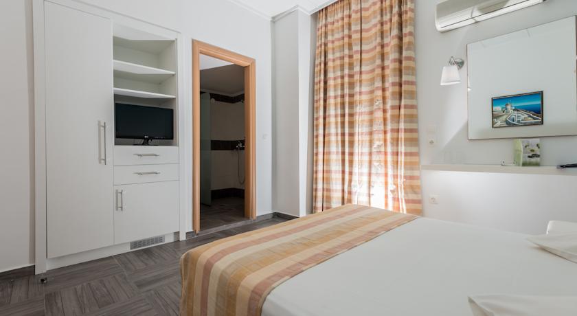 Le camere del Kipriotis Hotel vantano un arredamento accogliente, un lussuoso bagno privato, il WiFi gratuito, una TV con collegamento satellitare, un piccolo frigorifero e un minibar ben fornito.