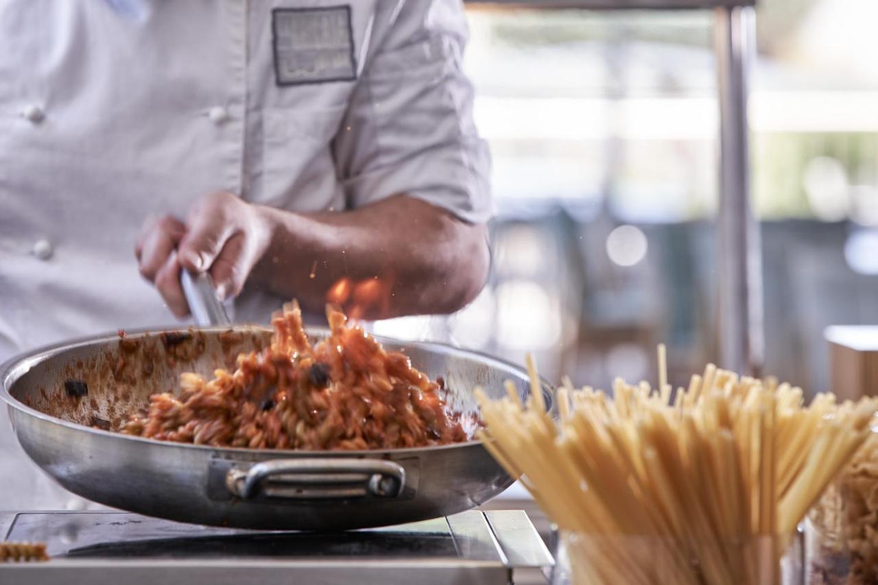 Prima colazione, pranzo e cena con servizio a buffet e ampia scelta di piatti della cucina internazionale, greca e italiana e bevande incluse (acqua, vino, birra e soft drink alla spina). Angolo della pasta show cooking con presenza del cuoco italiano. Settimanalmente sono previste cene a tema. Possibilità di cenare una volta durante il soggiorno presso uno dei ristoranti à la carte (su prenotazione).