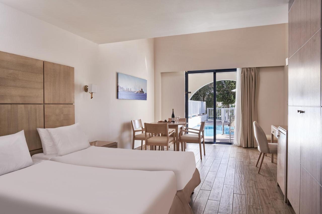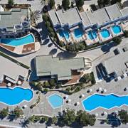 La formula prevede pensione completa con bevande ai pasti (acqua, vino, birra e soft drink alla spina) presso il ristorante principale che è aperto, per chi volesse un light lunch, anche dalle 14:30 alle 16:30. Possibilità di cenare una volta durante il soggiorno su prenotazione presso uno dei ristoranti à la carte presenti in struttura. Presso gli snack bar del resort, presso il bar in piscina e il bar in spiaggia, dalle 10.30 alle 17.30, vengono serviti snack dolci e salati, pasta, piatti per bambini, insalate, frutta di stagione e gelati. Dalle 10 alle 23.30 consumo illimitato di bevande analcoliche (acqua e soft drink) e alcoliche locali (birra e vino alla spina locali, liquori locali ouzo, brandy, cocktail pina colada, san francisco, lady killer, gin fizz, black russian, manhattan, martini, tom collins), tè, tisane, caffè espresso, caffè americano, cappuccino. Tutte le bevande sono servite in bicchiere tramite dispenser o dal personale dell’hotel.