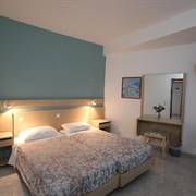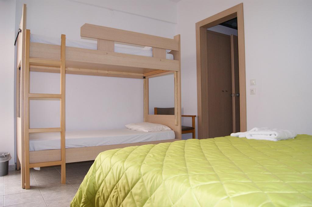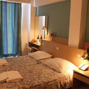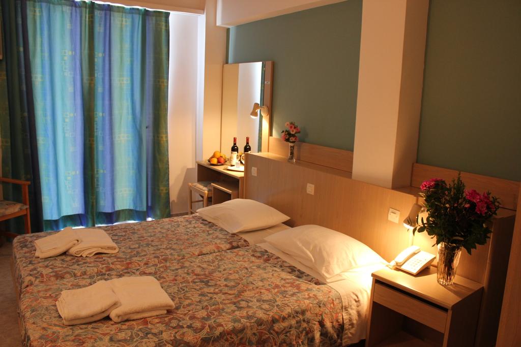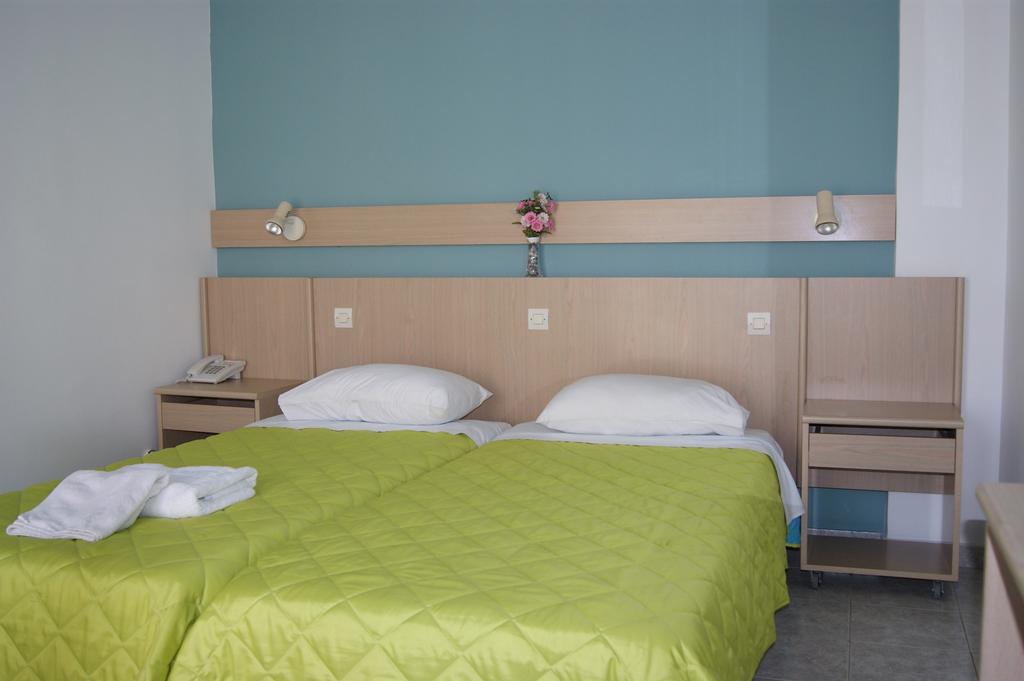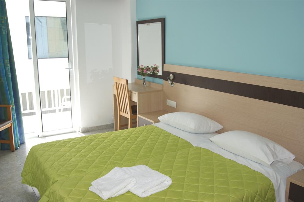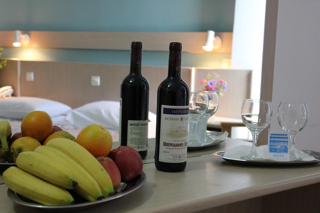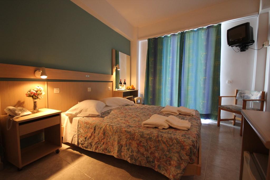 Le camere del Moschos Hotel sono dotate di aria condizionata, TV, frigorifero, bagno privato e balcone privato.