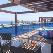 Nautica Blue Resort è circondato da stupendi giardini e vanta una vista spettacolare sul Mar Mediterraneo. Disposto per assomigliare ad un tranquillo villaggio di pescatori, si adatta in maniera armoniosa al paesaggio circostante. Il resort si estende su di un'area di 70.000 metri quadrati ed è stato progettato per riflettere lo stile architettonico locale, ma incarna alla perfezione l'emblema delle vacanze di lusso.