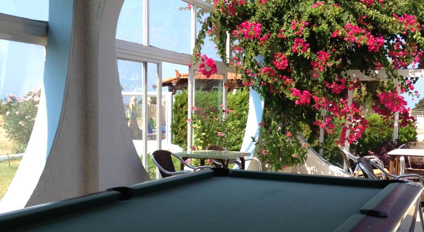La struttura, che serve ogni mattina una colazione a buffet, ospita un ristorante a buffet con specialità greche e uno snack bar aperto dalle 09:00 a mezzanotte, dove gustare snack e bevande alcoliche e analcoliche. Ubicato a 150 metri da un centro di kitesurf, l'hotel offre un'area per il deposito di attrezzature per windsurf, una terrazza solarium con ombrelloni e lettini, il servizio di cambio valuta e il noleggio di auto e biciclette.