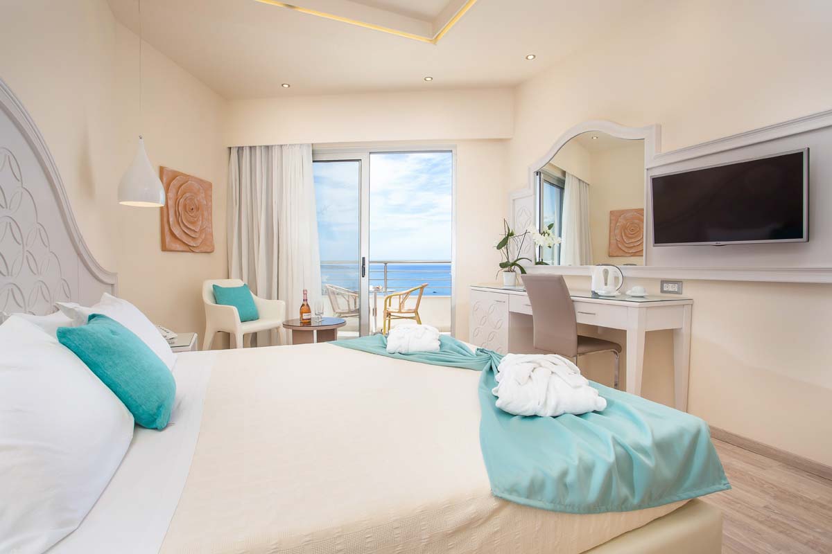 Luminose, spaziose e ariose, le camere includono l'aria condizionata, un balcone arredato con vista sulla zona, sulle montagne o sul mare, un'area salotto, una TV satellitare, una radio e un frigorifero.
