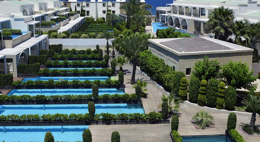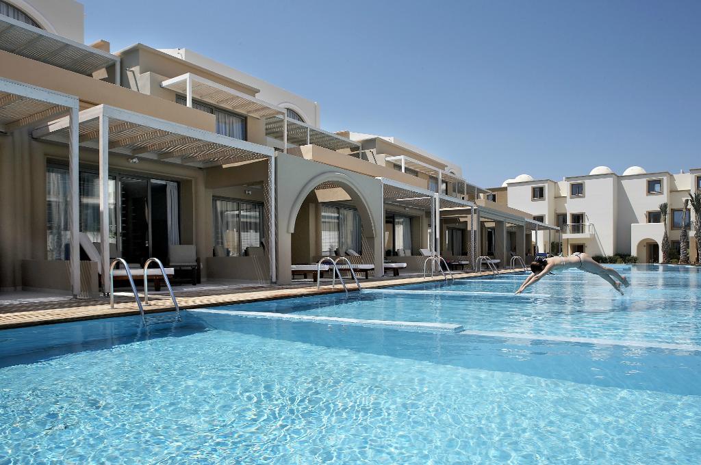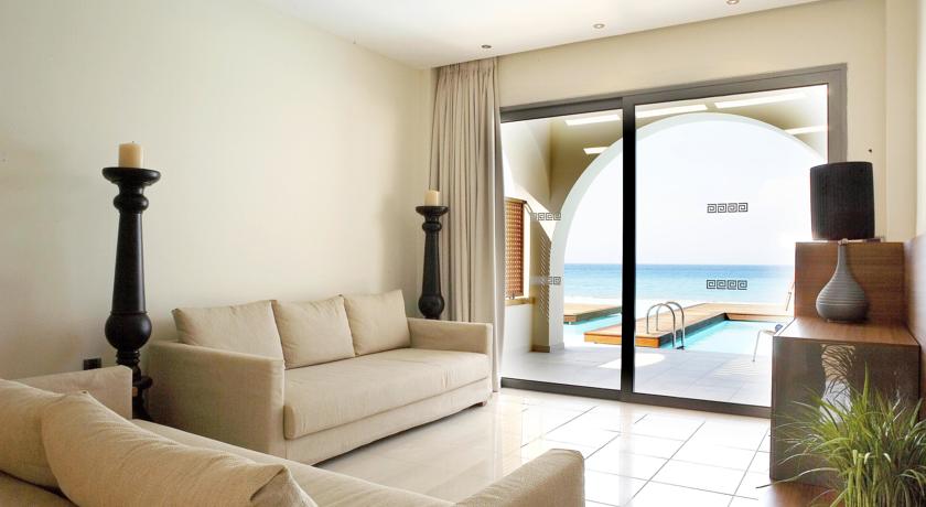 Tutte climatizzate e dotate di una camera da letto separata, le suite includono una terrazza arredata con vista sul giardino, sulla piscina o sul Mar Egeo, un minibar, un soggiorno con divano e TV a schermo satellitare, gli accappatoi e le pantofole. Alcuni degli alloggi sono disposti su 2 livelli.