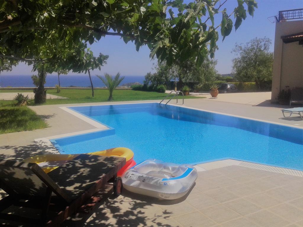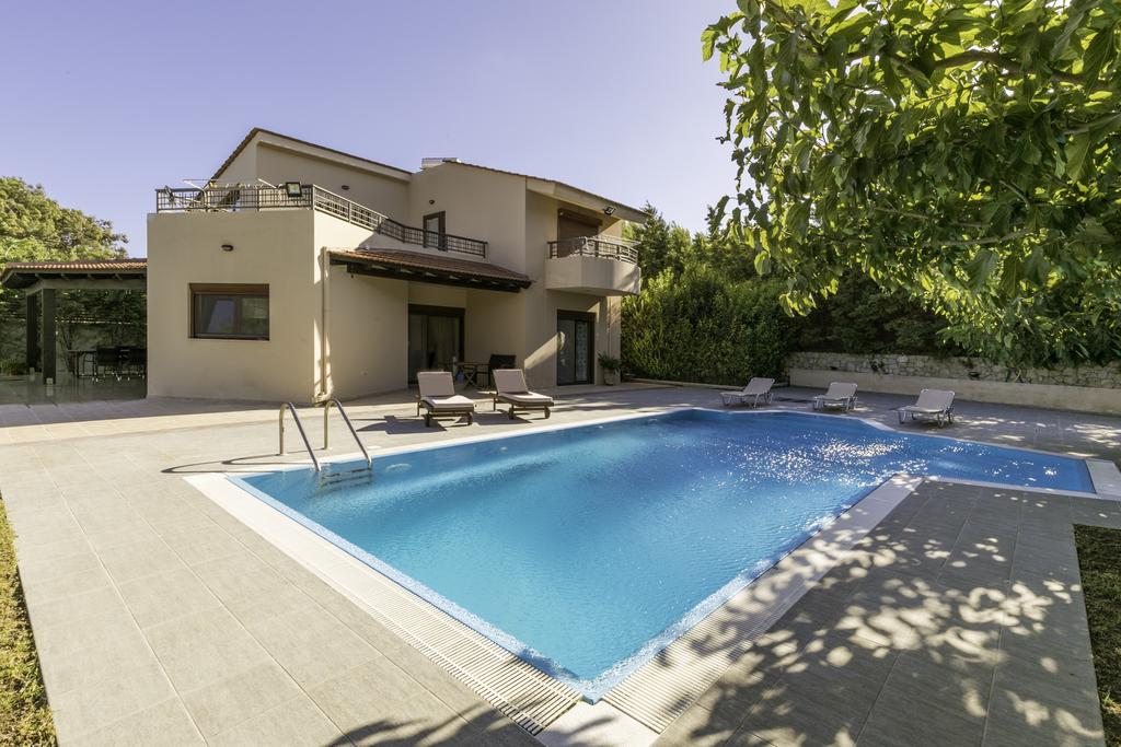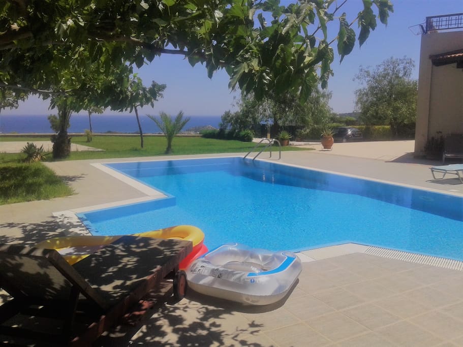 La villa si trova in un meraviglioso ambiente naturale con vista sulla montagna e sul mare. Ci sono quattro camere da letto, due bagni, cucina, sala da pranzo e soggiorno. C'è un ampio cortile con erba, alberi e piscina. La posizione è ideale in quanto si trova in una zona tranquilla, lontano dai rumori della città, ma allo stesso tempo troppo vicino a Anthony Quinn e alla spiaggia di Ladiko.
