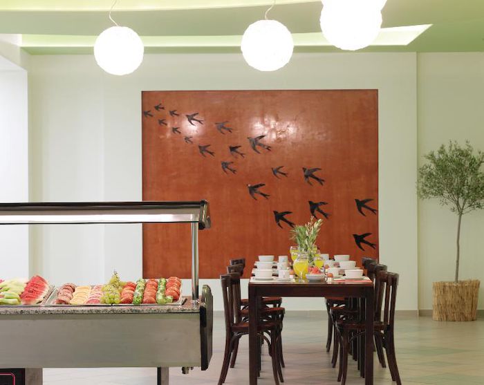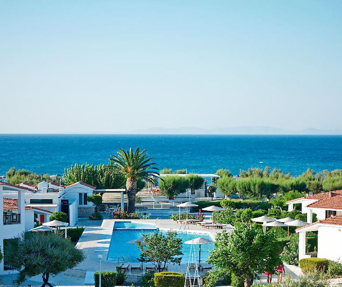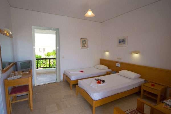 È dotato di una grande piscina e separata per bambini piscina all'aperto, e dispone di un ristorante che serve piatti della cucina greca. Una sala giochi con tavolo da calcio. Free WiFi è disponibile in tutta la struttura. Tutte le camere sono ariose e soleggiate con un balcone o una veranda affacciata sul giardino fiorito, con un facile e immediato accesso alla piscina, il ristorante e la spiaggia.