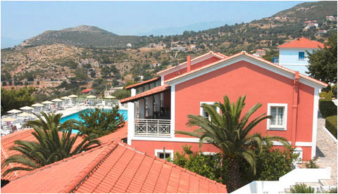 L'hotel è costruito su una collina con splendida vista sulla campagna circostante e sul mare. Questo affascinante hotel ospita anche un ristorante, bar, snack-bar, sala soggiorno confortevole, un campo da tennis, e una delle più grandi piscine di Samos con una superba vista.