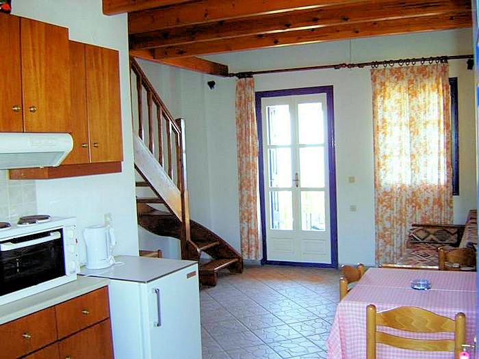 La spiaggia più vicina è a 350 metri ed è organizzato e pulito. Ormos Marathokampos (un piccolo villaggio di pescatori della costa di Marathokampos) è in 700 metri. Centro di Kampos Marathokampos (Votsalakia) è il 1 km. Il porto di Karlovassi è il 17 km e l'aeroporto a 30 chilometri.