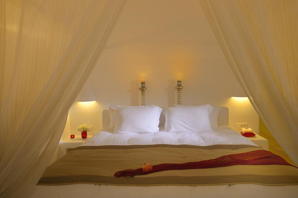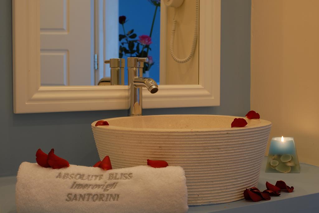 L'Absolute Bliss, struttura esclusiva dal tocco elegante e romantico, sorge sul punto più alto della roccia vulcanica di colore nero che costituisce Santorini, offrendo viste mozzafiato sulla Caldera.
