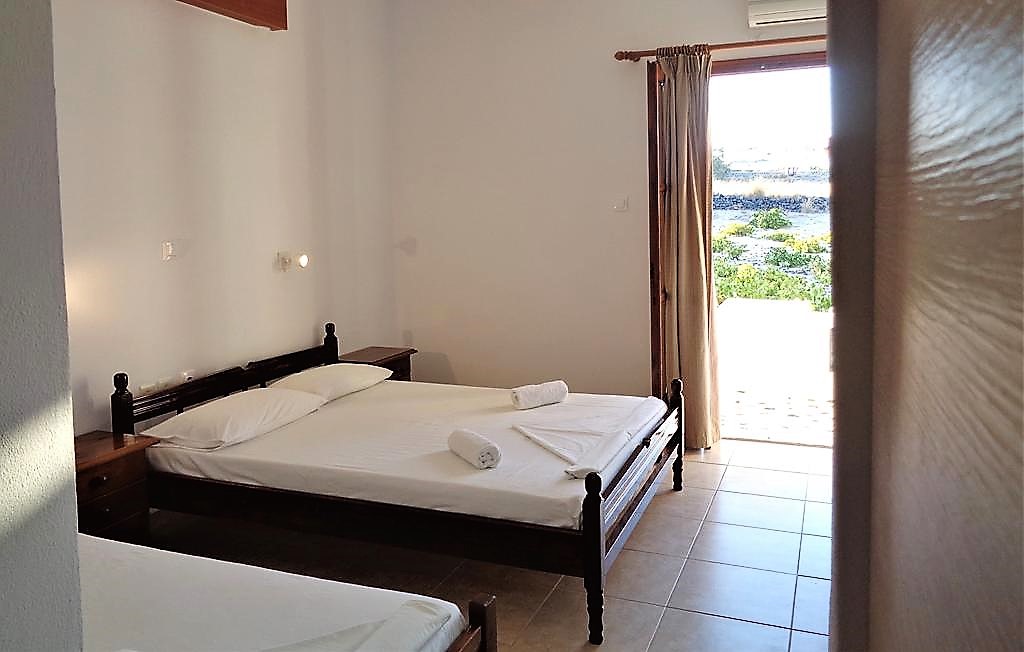 Gli alloggi dell'Adamastos godono della vista sul Mar Egeo, sul vigneto o sul paese, e dispongono di aria condizionata, TV satellitare e bagno con doccia. Gli asciugacapelli vengono forniti su richiesta.