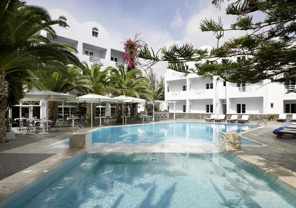Situato sul lungomare del villaggio di Kamari, l'Afroditi Venus Beach Hotel & Spa offre una spiaggia privata, un centro benessere, 4 ristoranti e camere con connessione WiFi gratuita. Tutte le sistemazioni del Venus Beach presentano interni elegantemente arredati con tonalità della terra, un balcone, una TV satellitare, l'aria condizionata e un asciugacapelli, mentre alcune sono dotate di zona giorno.