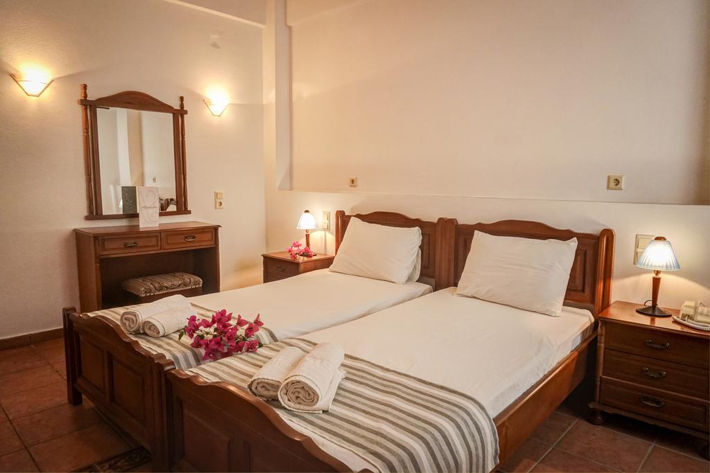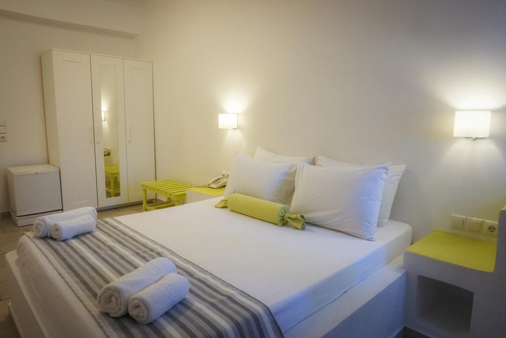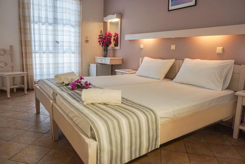Tutte le unità si affacciano su un balcone o patio arredato e con vista sul giardino, sulla piscina o sul Mare Egeo e sono dotate di TV satellitare e frigorifero. Alcune dispongono anche di un angolo cottura.