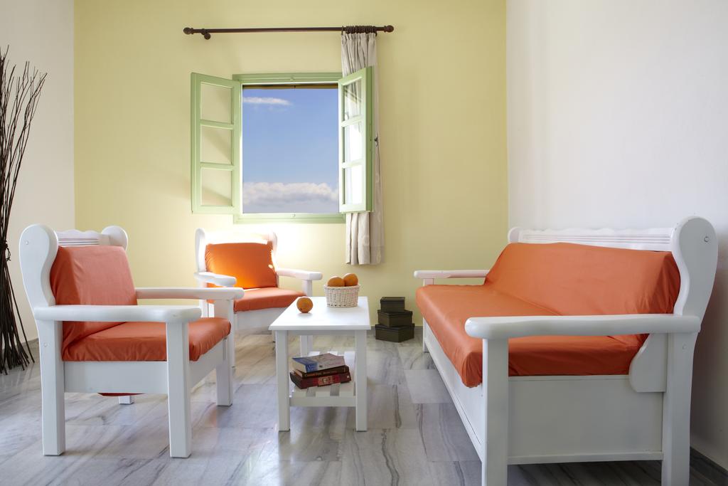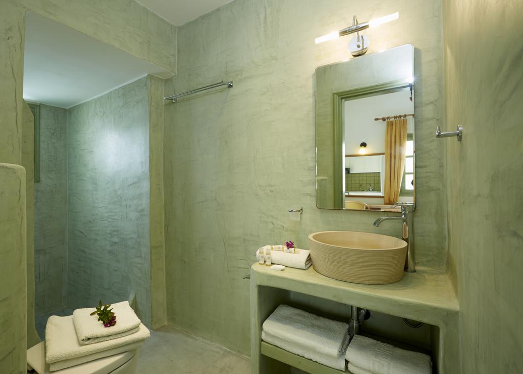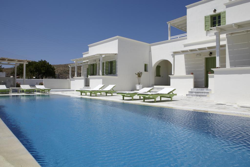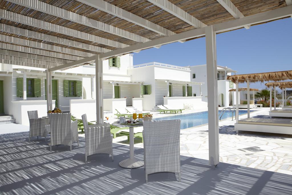 Tutti climatizzati e arredati in moderno stile cicladico, gli alloggi includono un angolo cottura con frigorifero, un balcone o un patio con vista sul Mar Egeo e sulle montagne, una TV e un set di cortesia. Alcuni comprendono una camera da letto e un soggiorno separati.