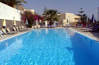 I dintorni del giardino colorati in combinazione con la vista mozzafiato sul mare e sul villaggio di Kamari è una garanzia per una meravigliosa vacanza all'insegna del relax.