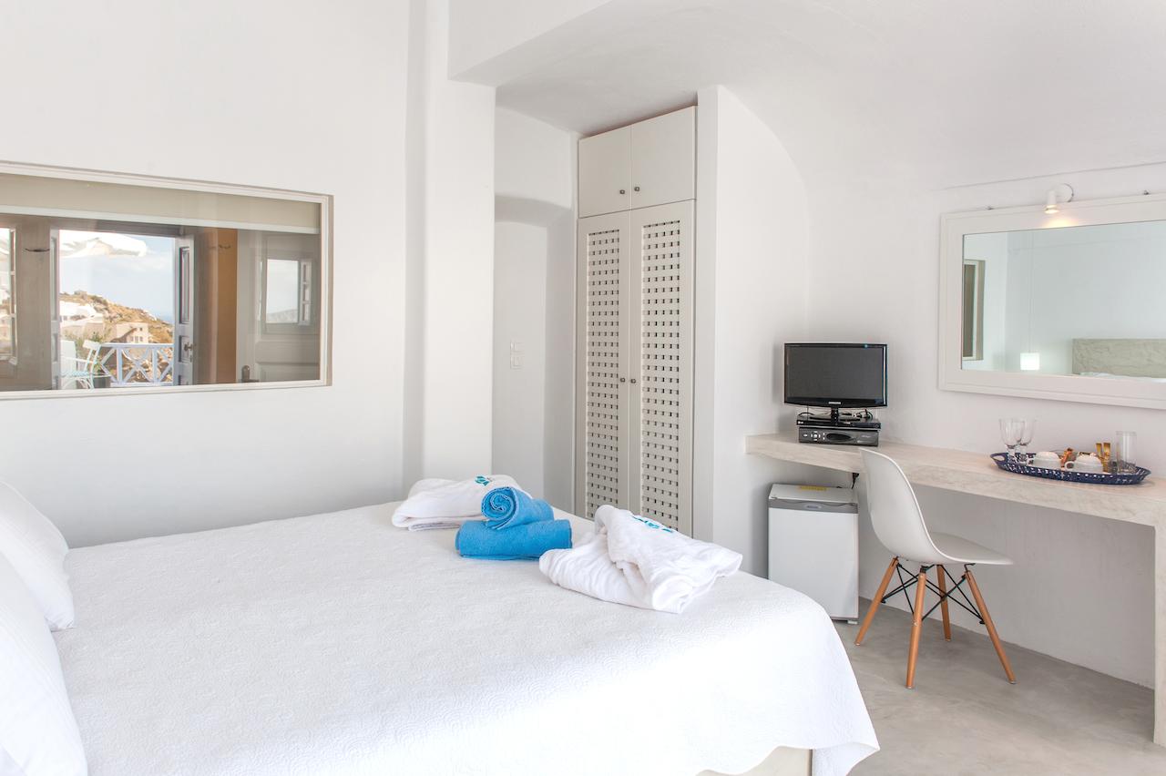 Le splendide camere imbiancate a calce regalano magnifiche viste sul vulcano, sulla caldera e sul Mar Egeo, e dispongono di aria condizionata, TV satellitare LCD, lettore DVD e macchina da caffè. Le aree comuni sono coperte dalla connessione Wi-Fi gratuita.