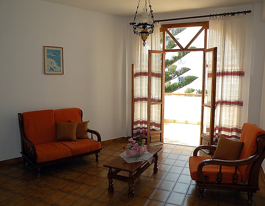 La struttura dista appena 200 metri dal centro di Kamari, 8 km dalla vivace Fira, 3 km dal suo aeroporto e 12 km dal porto di Athinios.