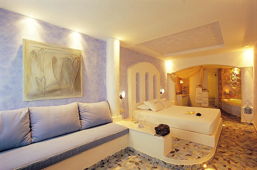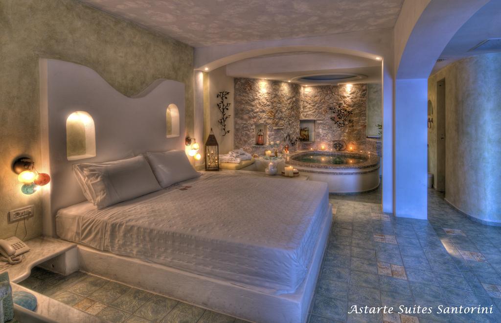 Caratterizzate da un'atmosfera romantica, le sistemazioni dell'Astarte Suites vantano decorazioni con tonalità naturali, letti da incasso, una TV satellitare, un lettore CD, un minibar, una terrazza privata con vista sul vulcano, gli accappatoi, le pantofole e cosmetici.