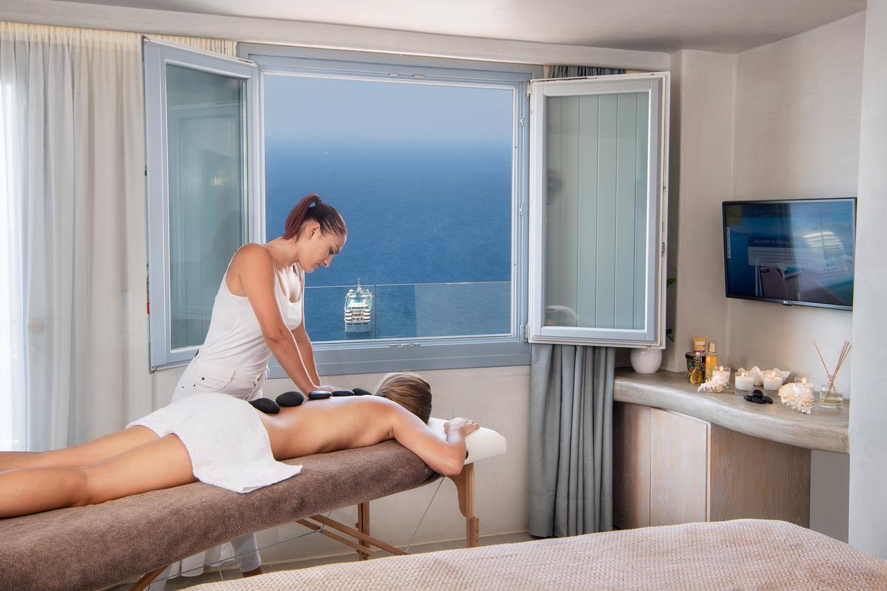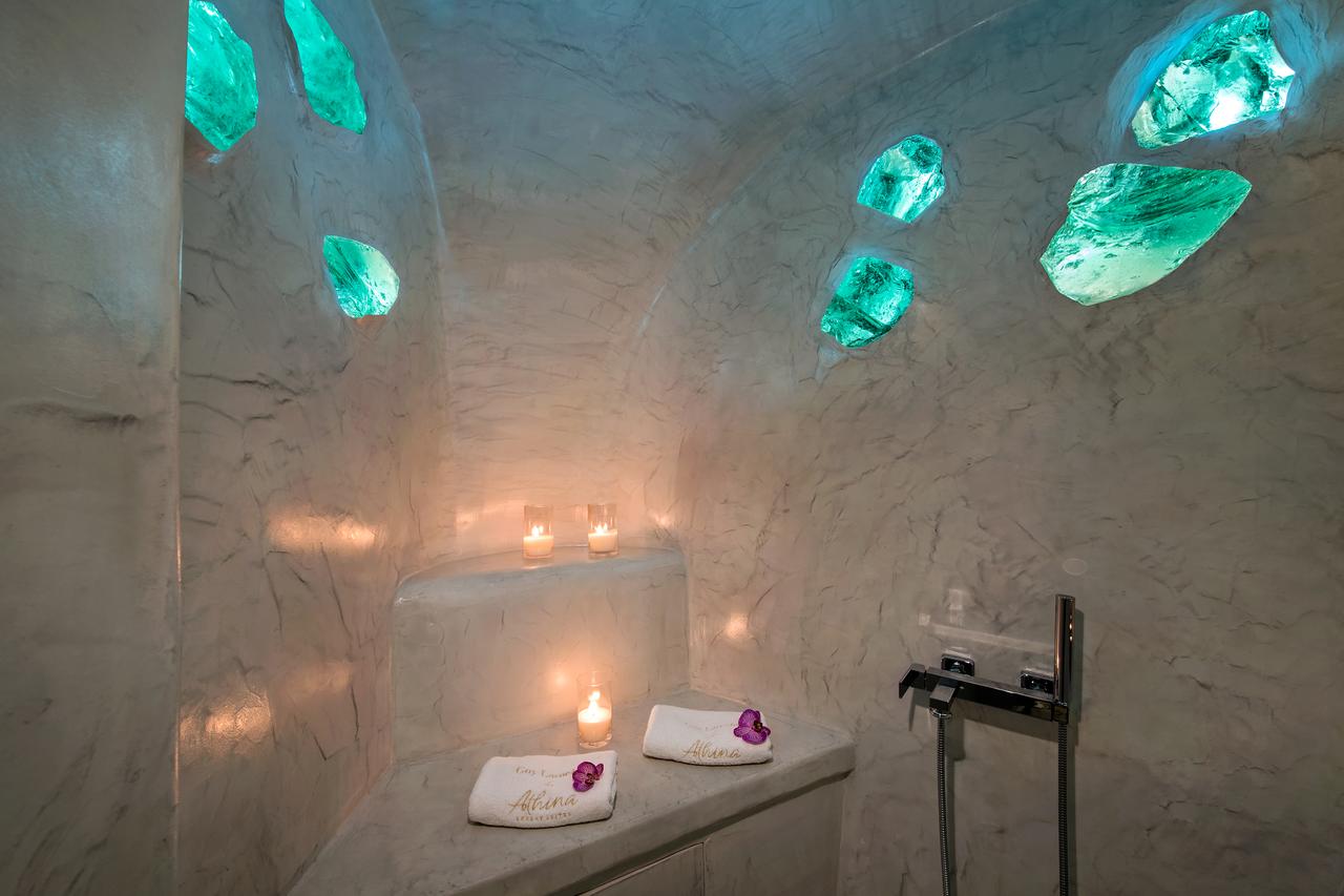 Tutte confortevoli e spaziose, le unità sono scolpite all'interno della roccia vulcanica secondo lo stile unico dell'architettura tradizionale dell'isola e includono una TV satellitare a schermo, una docking station per iPod e la vista panoramica sul Mar Egeo, sulla caldera e sul vulcano.