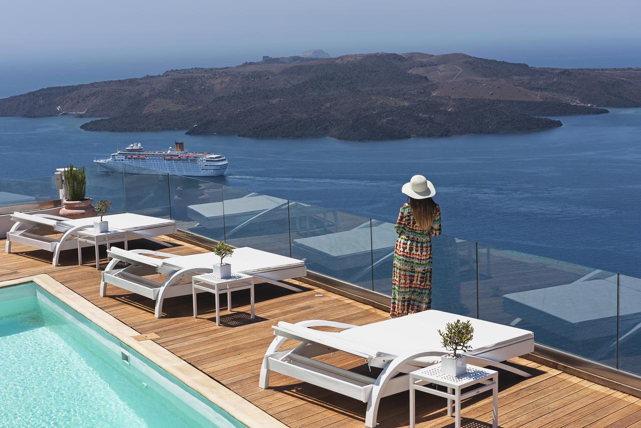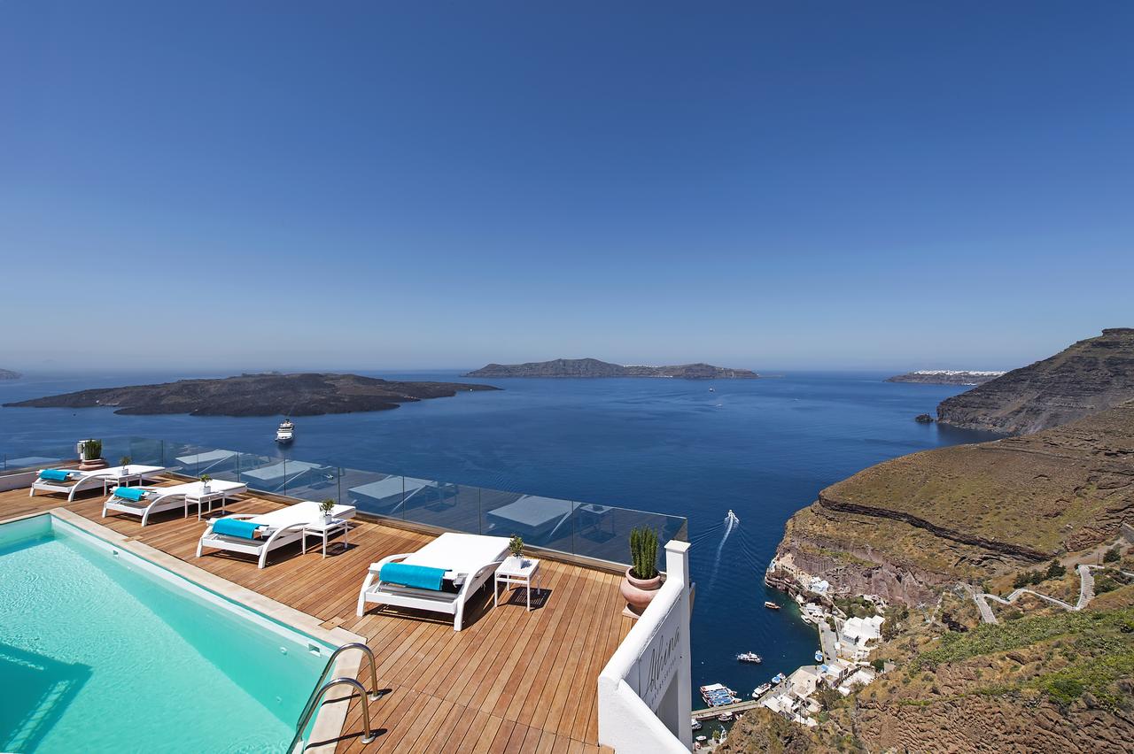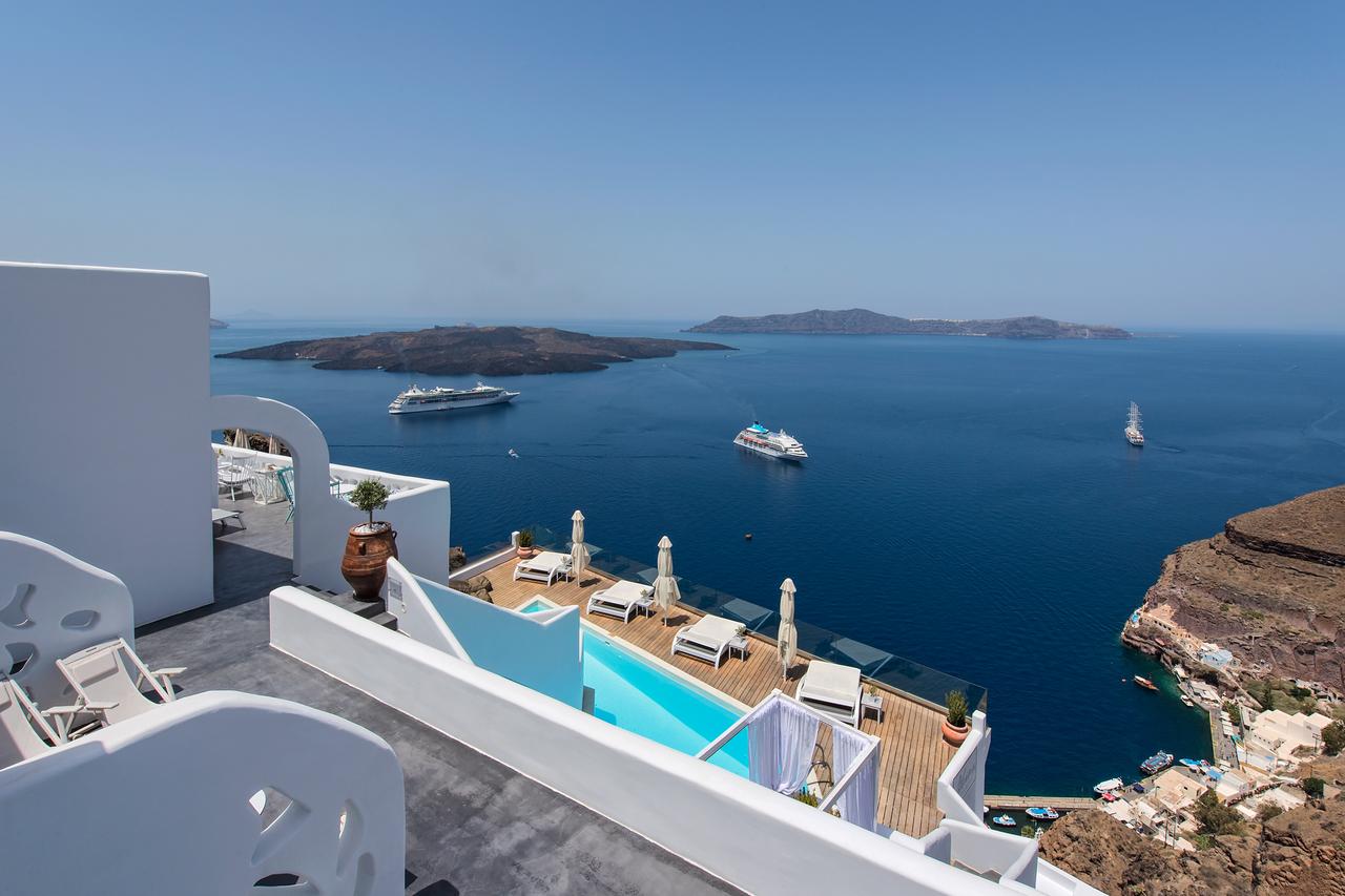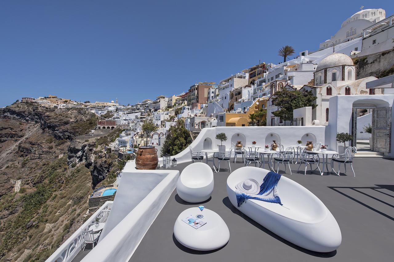 Scavata nella roccia, nella città di Fira, questa bellissima struttura in stile cicladico offre una piscina, una terrazza con vista panoramica sulla Caldera e sul vulcano, la connessione WiFi gratuita nelle aree comuni e sistemazioni dotate di aria condizionata, balcone o terrazza.
