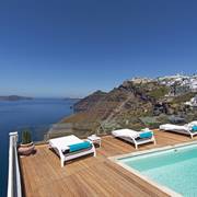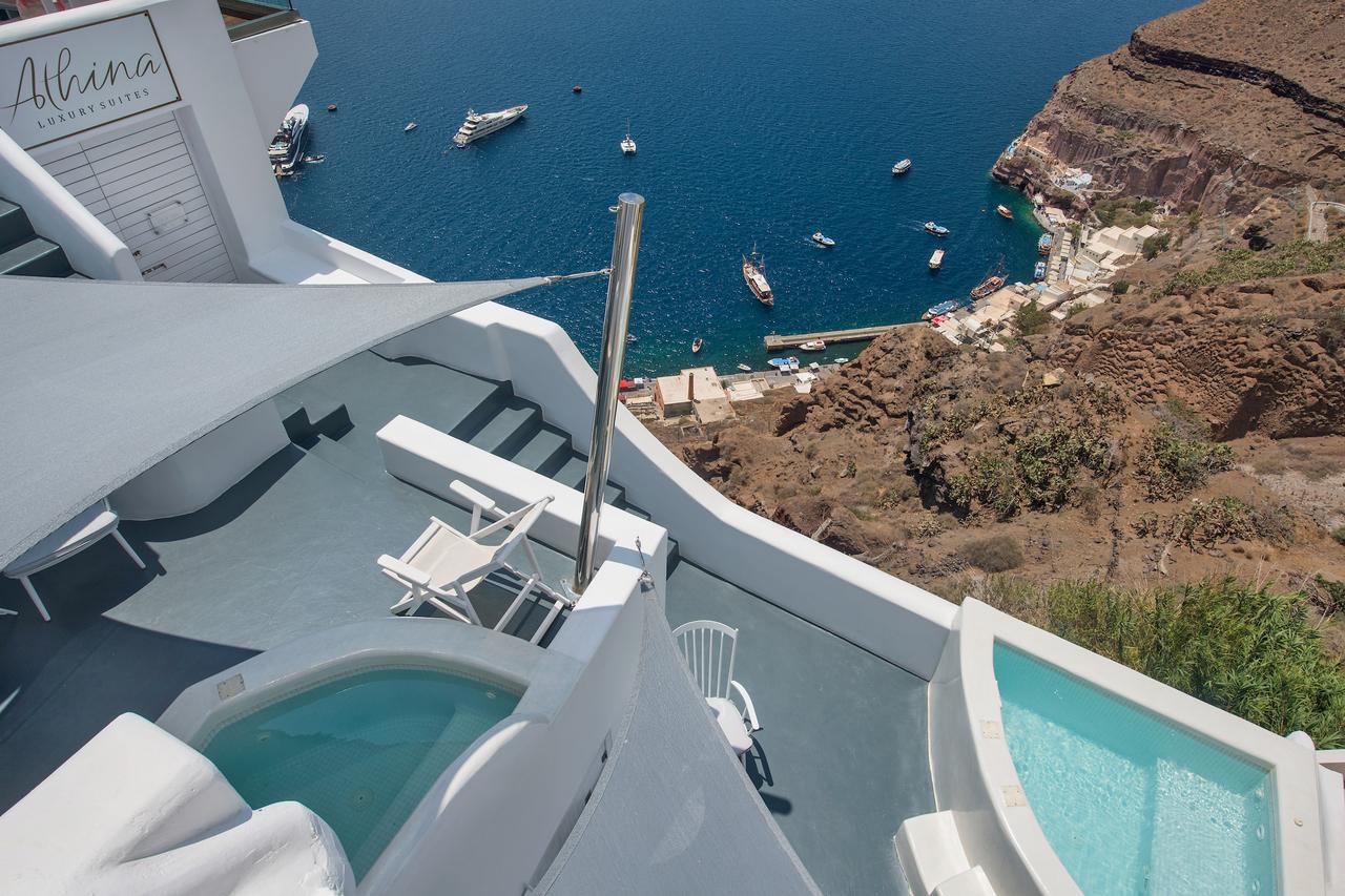 L'Athina Luxury Suites sorge a pochi passi dal centro di Fira, ricco di negozi, e a 3,5 km dal porto di Ormos Athinios e a 7 km dall'aeroporto nazionale di Santorini, entrambi raggiungibili tramite un servizio navetta su richiesta e a pagamento.