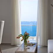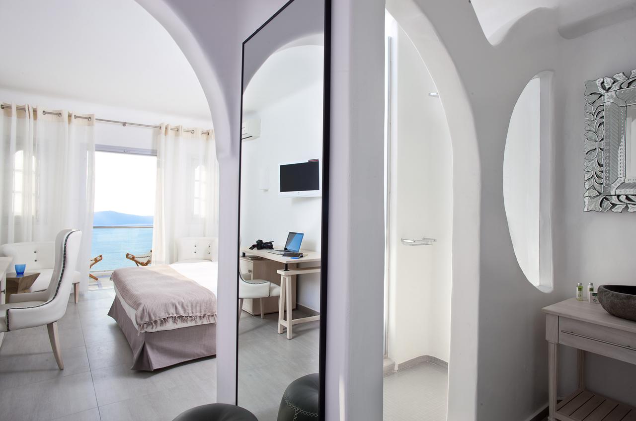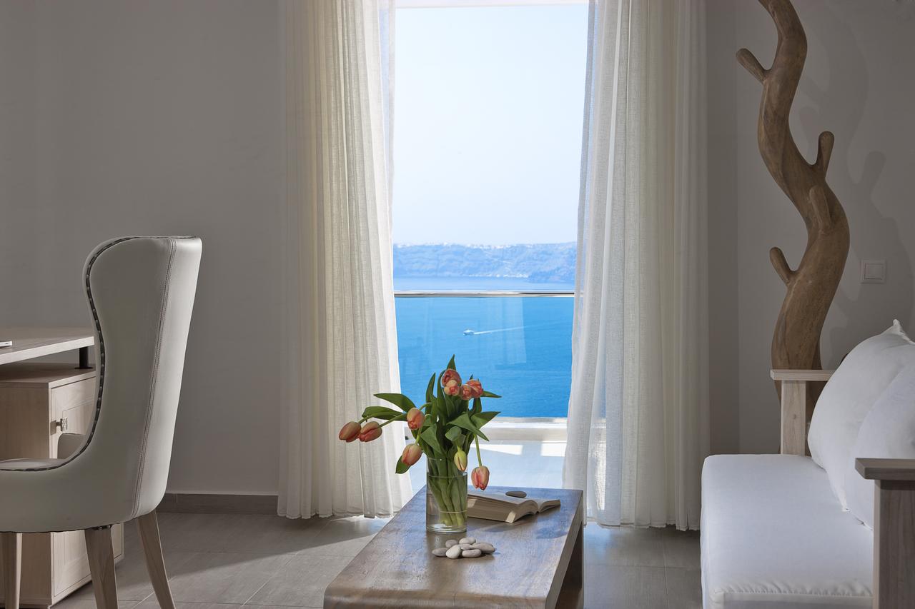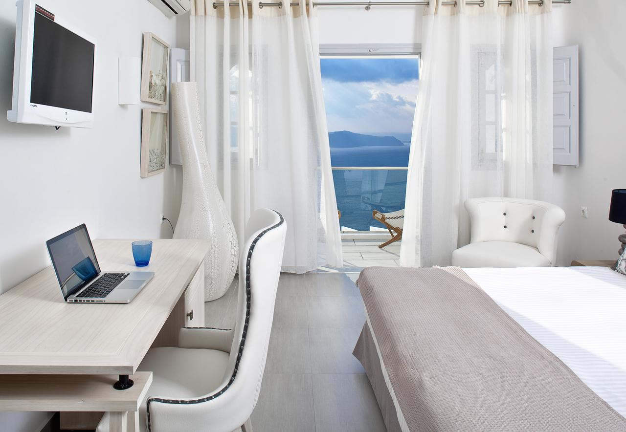 L'hotel vanta lo stile architettonico tradizionale dell'isola e offre camere con mobili artigianali, provviste di balconi con vista sulla caldera. Sono disponibili anche junior suite fornite di un confortevole soggiorno. Tutte le unità presentano una doccia con getto a pioggia.