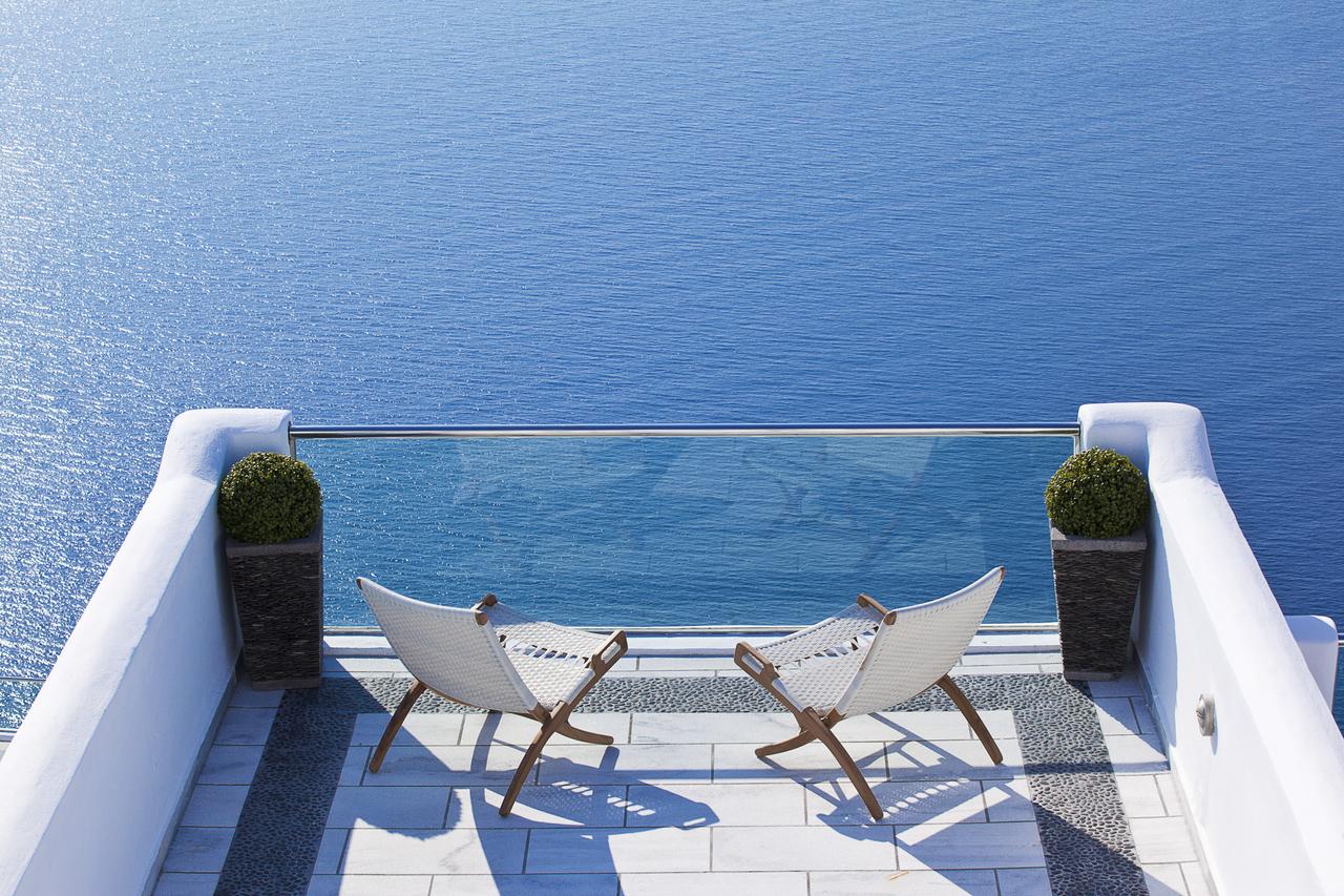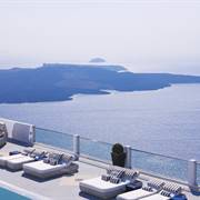 Adagiato sulla cima di una collina con splendide vedute sul Mar Egeo e sulla caldera del vulcano, il Belvedere si trova in posizione tranquilla a Firostefani, ma anche a due passi dai suoi negozi, musei e dalla vita notturna.