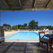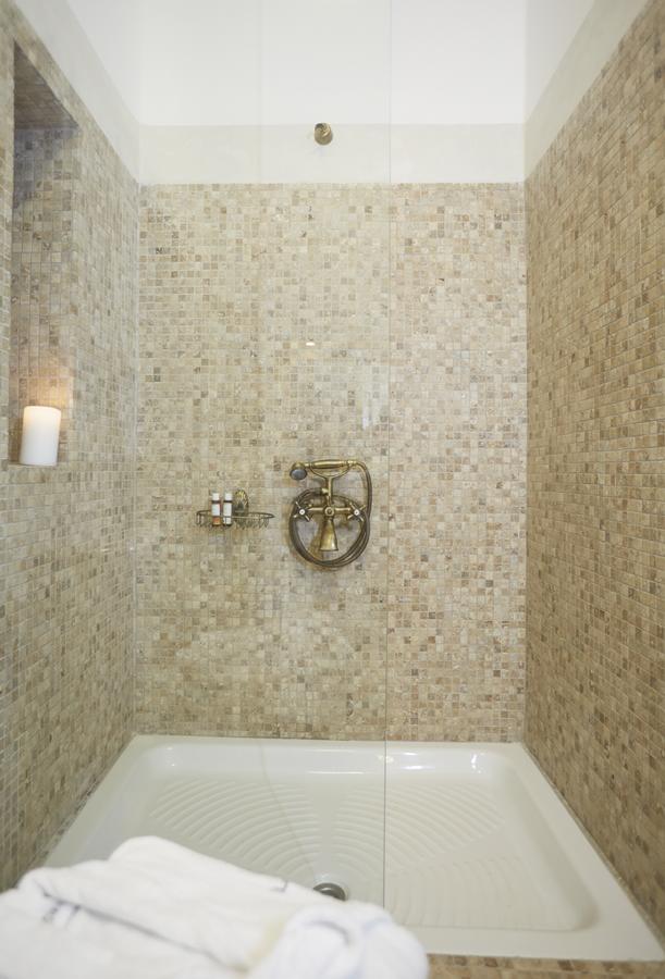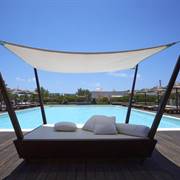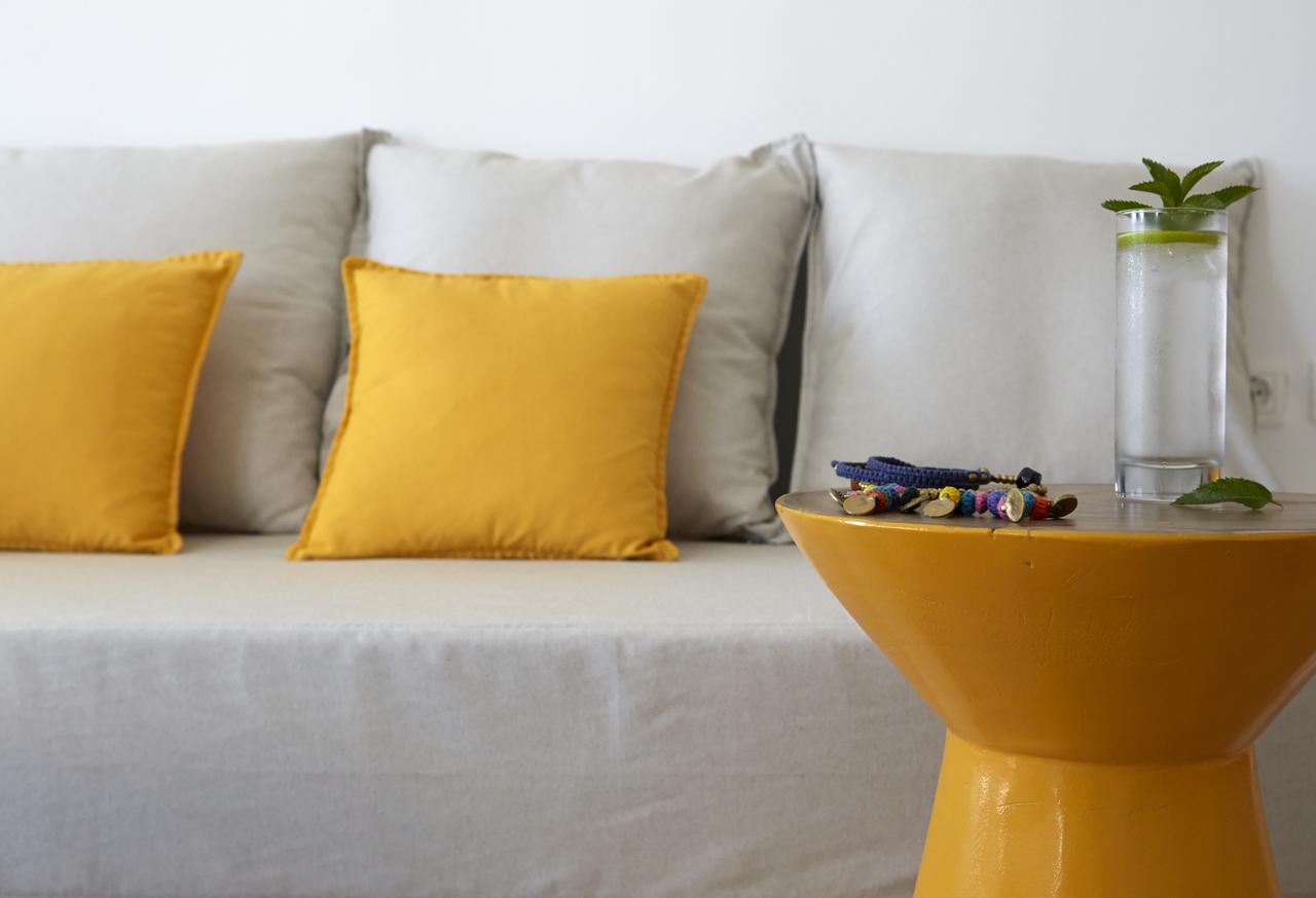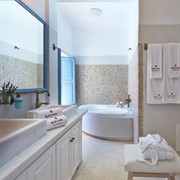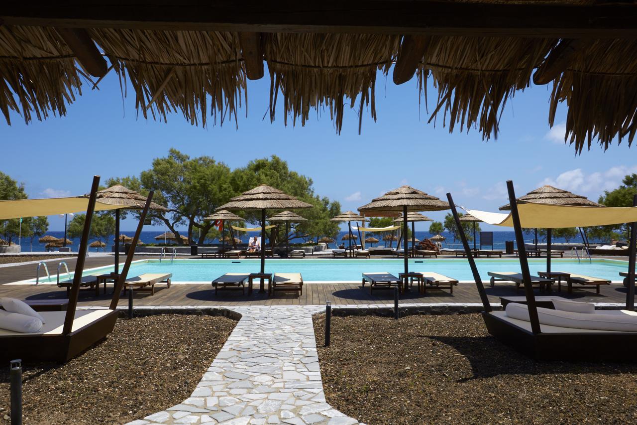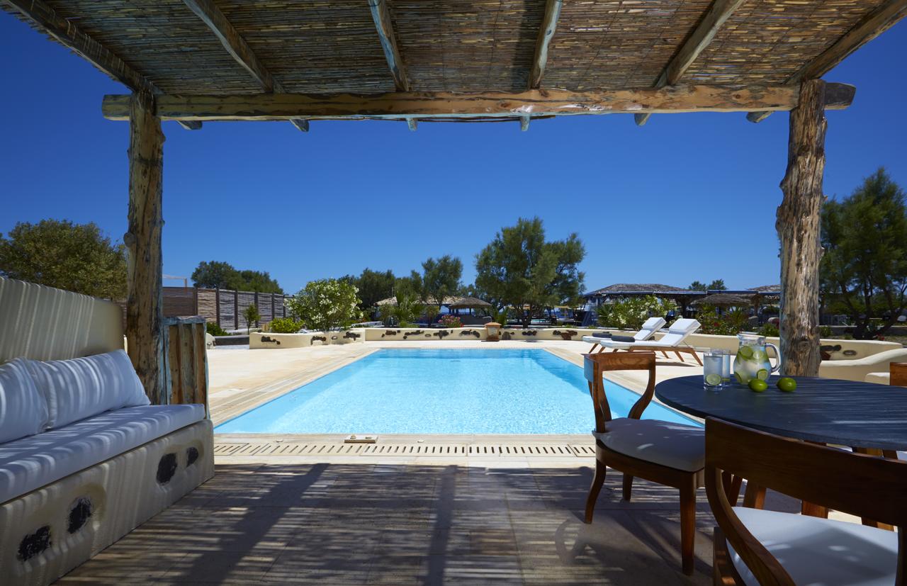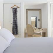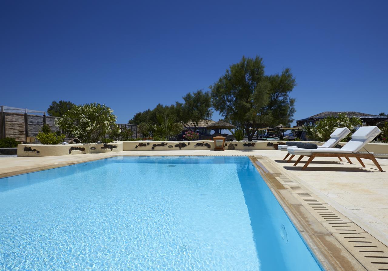 Imbiancata a calce e dotata di patio privato con piscina, giardino e vista sul Mar Egeo, ciascuna suite dispone di letti da incasso, camino, TV a schermo piatto con lettore DVD, minibar, aria condizionata e bagno a mosaico completo di prodotti naturali Korres, pantofole, accappatoi e, in alcuni casi, anche di vasca idromassaggio.