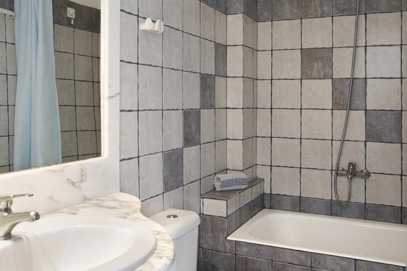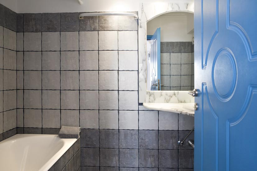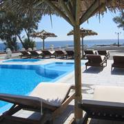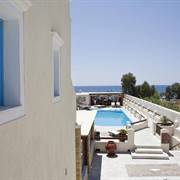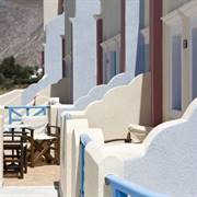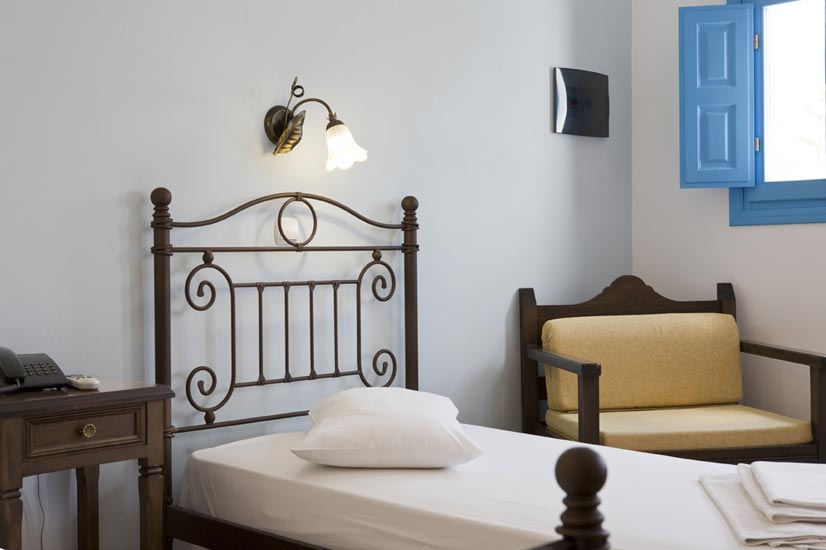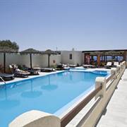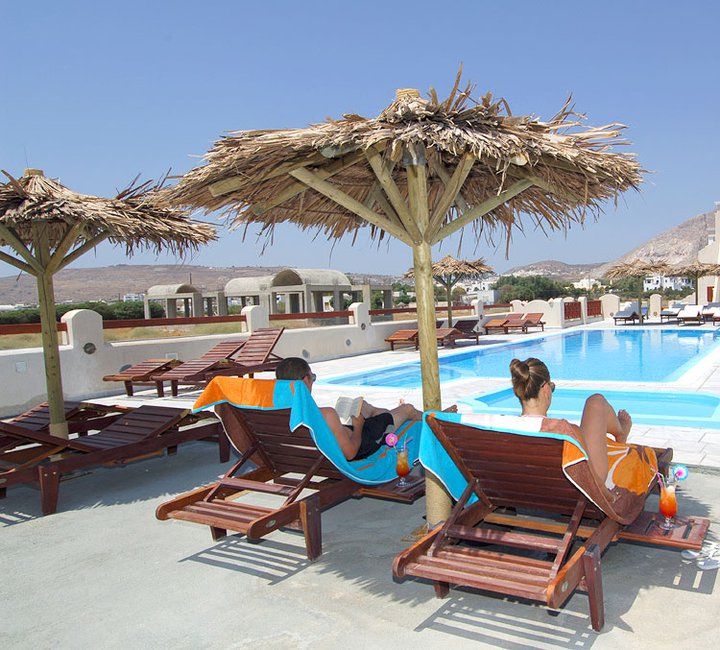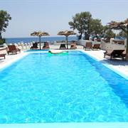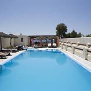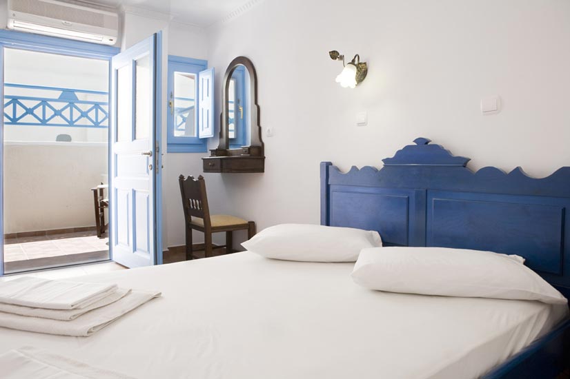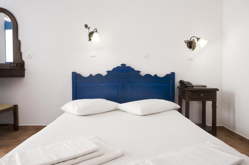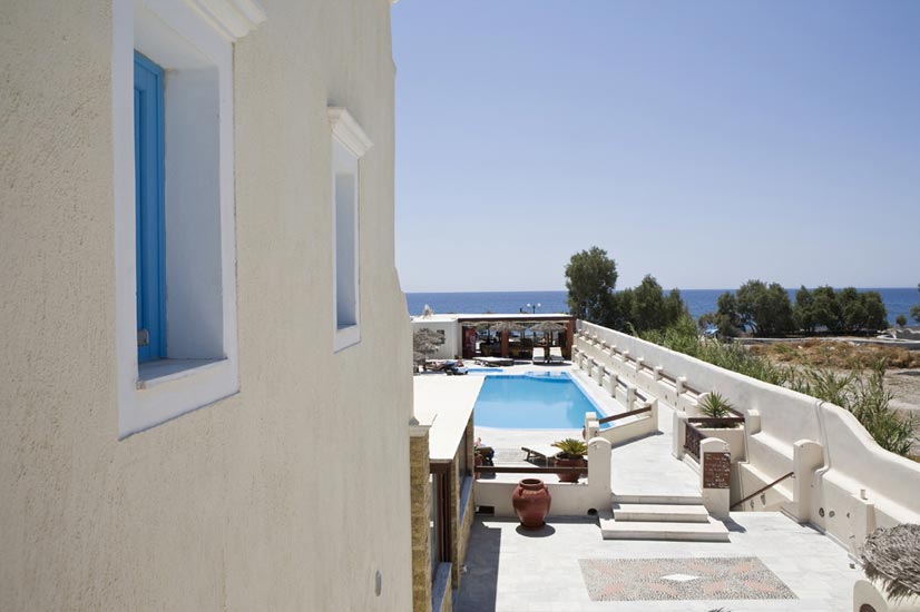 L'hotel è costruito secondo lo stile tradizionale delle isole cicladiche, con colorazioni in blu e tonalità chiare per tutta la struttura.