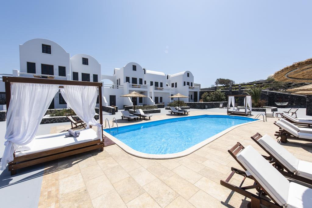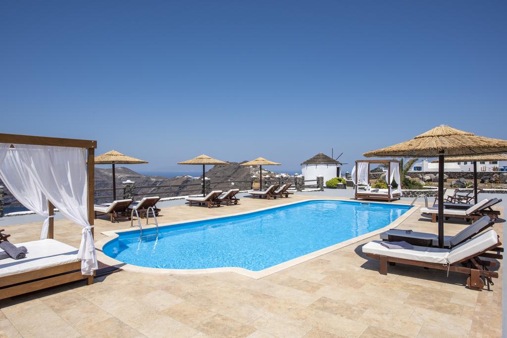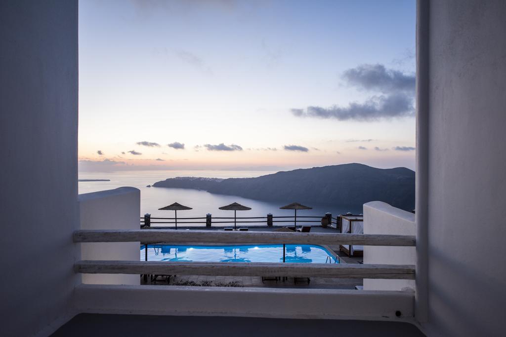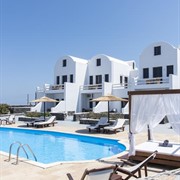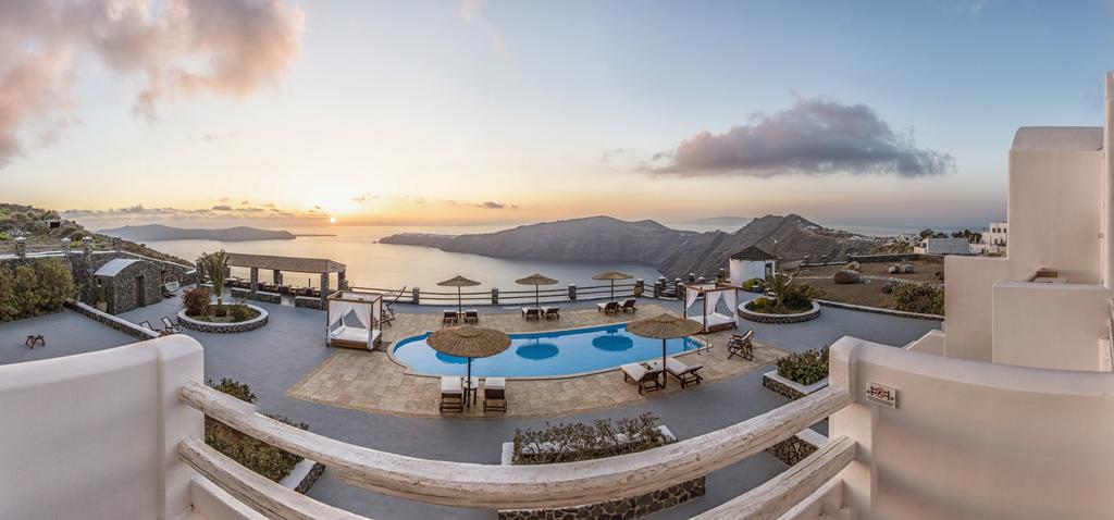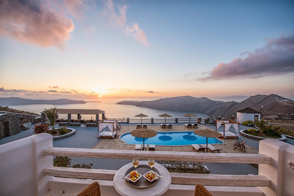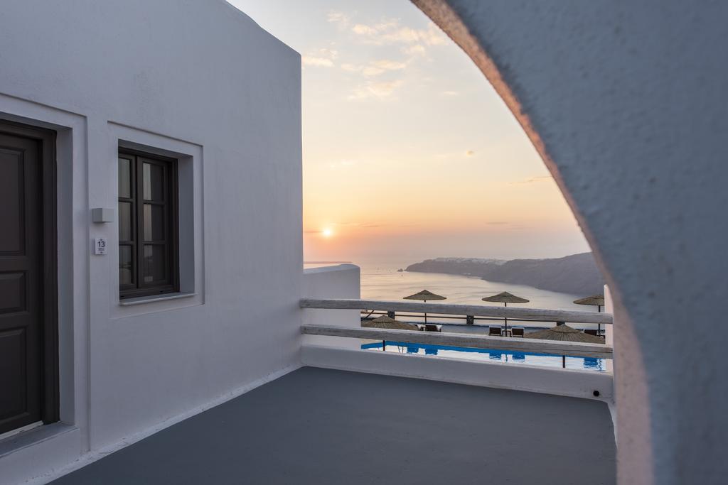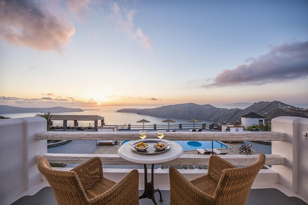 I caratteristici alloggi vantano una confortevole area salotto e una terrazza o un balcone privato con splendide viste su Santorini e sulla caldera.