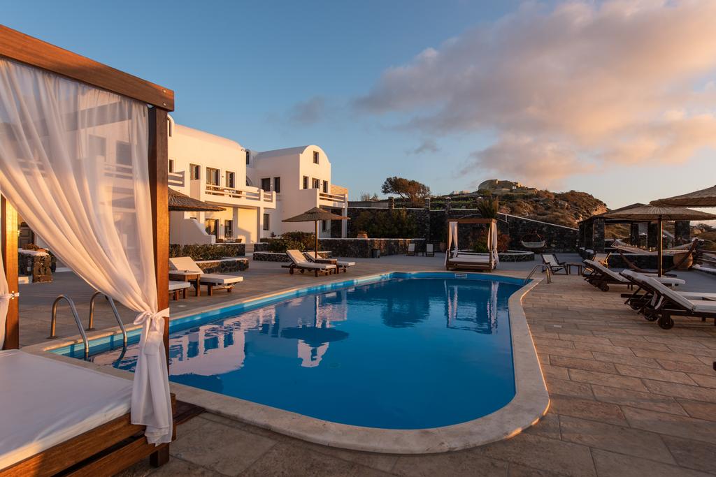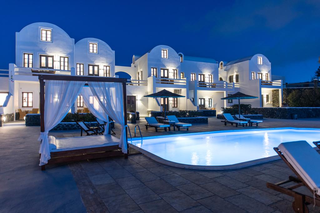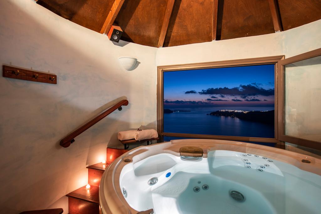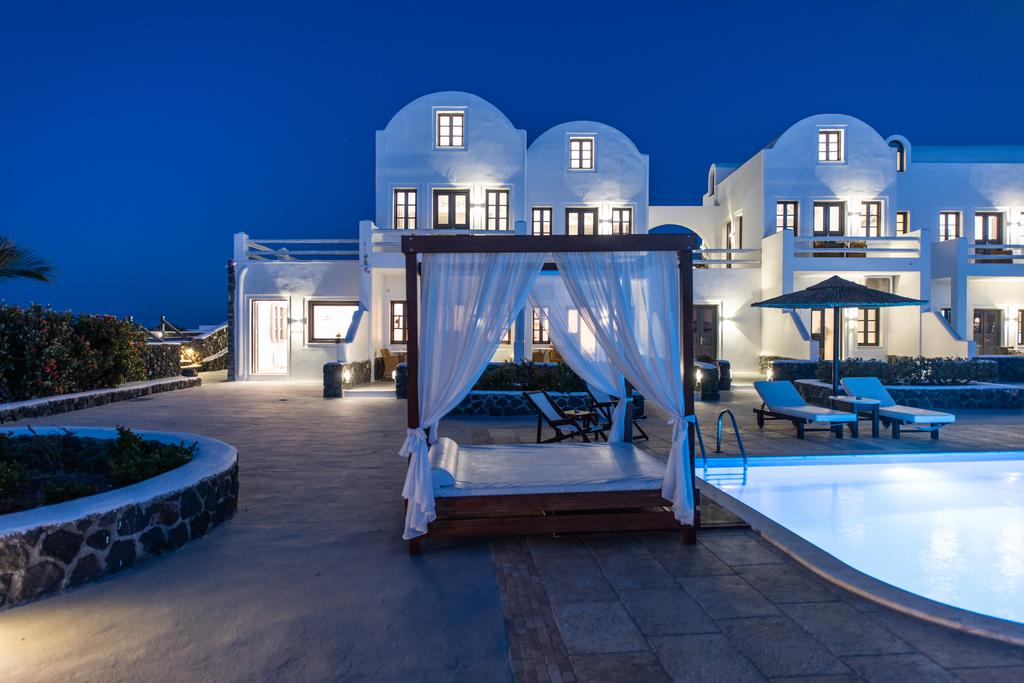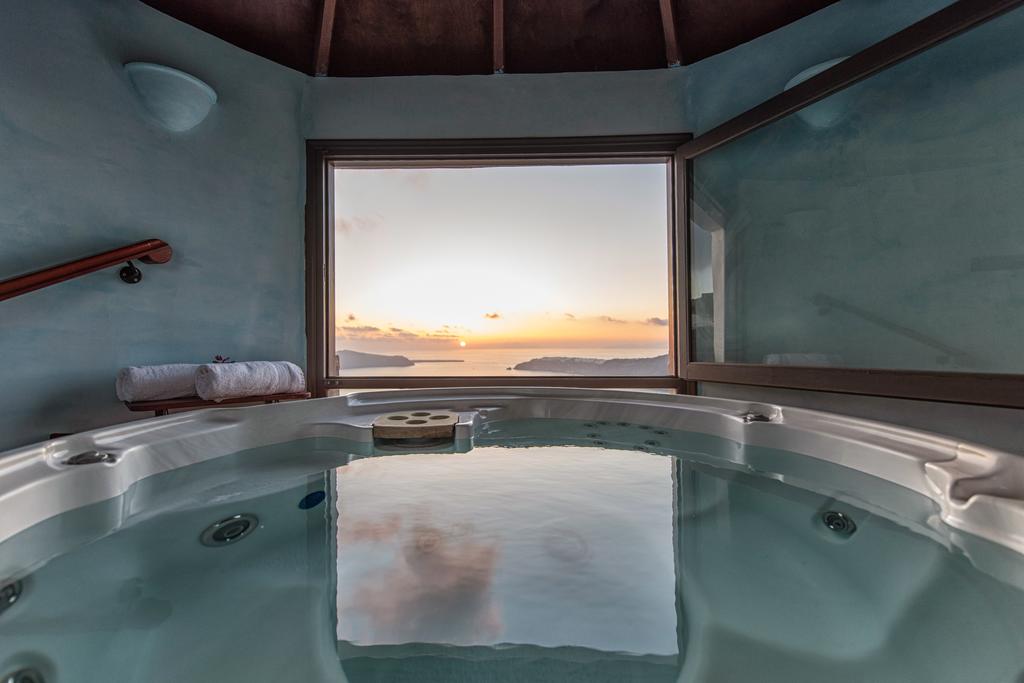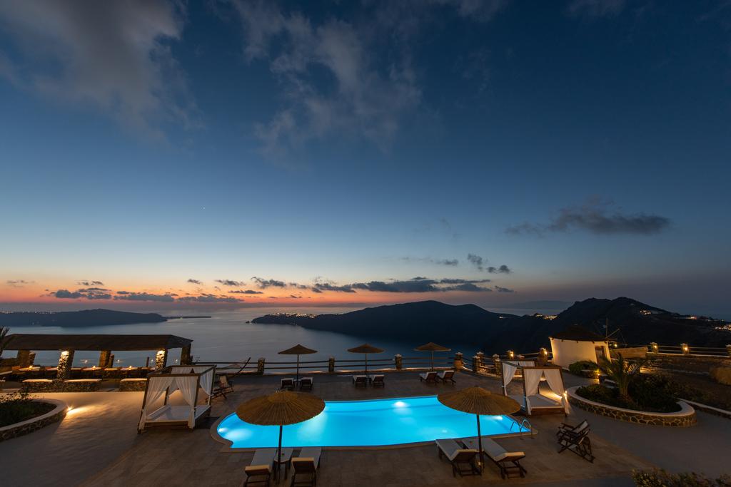 I caratteristici alloggi vantano una confortevole area salotto e una terrazza o un balcone privato con splendide viste su Santorini e sulla caldera.