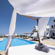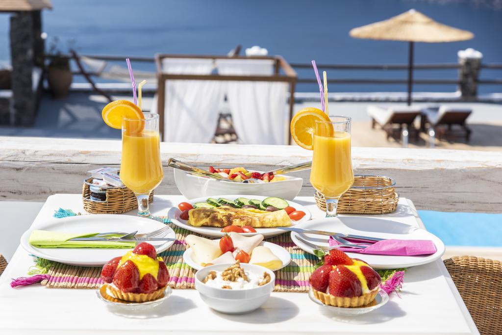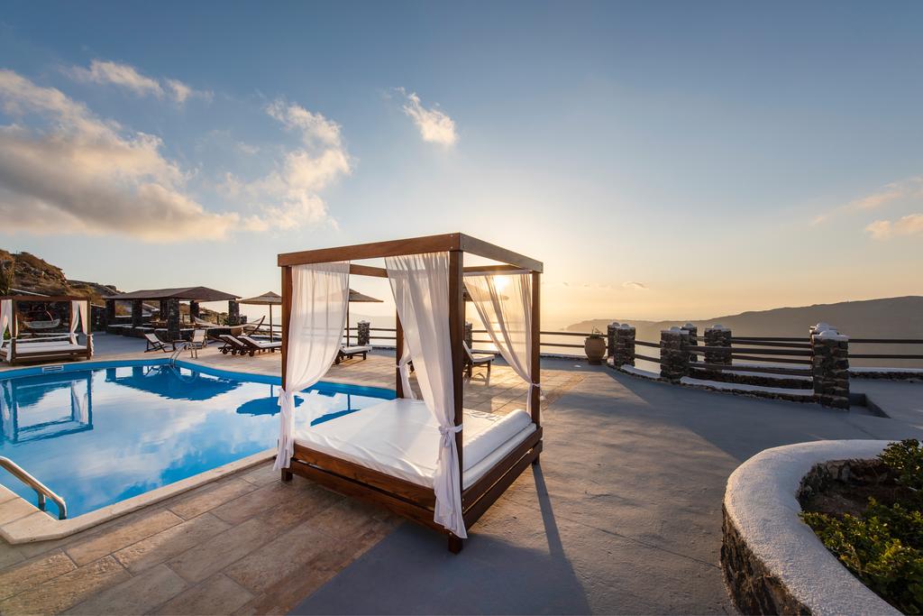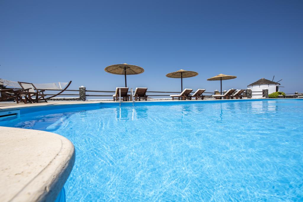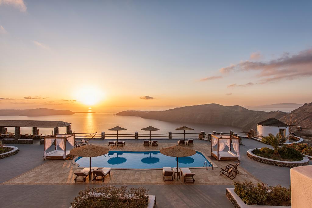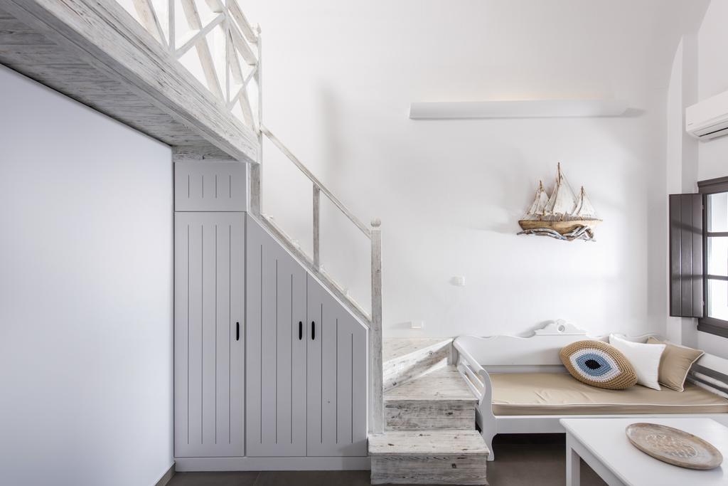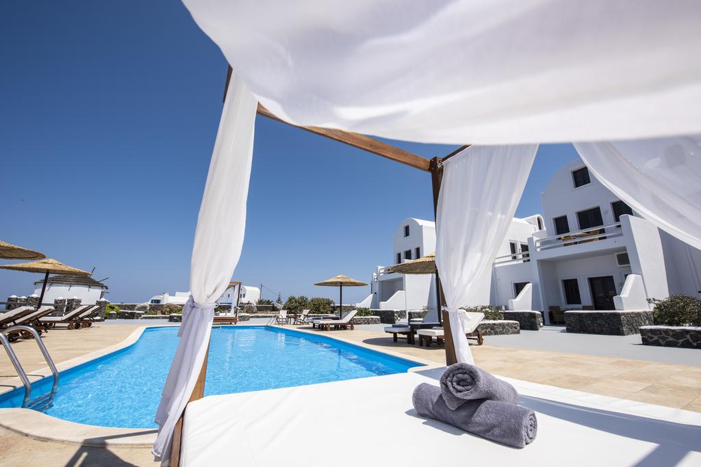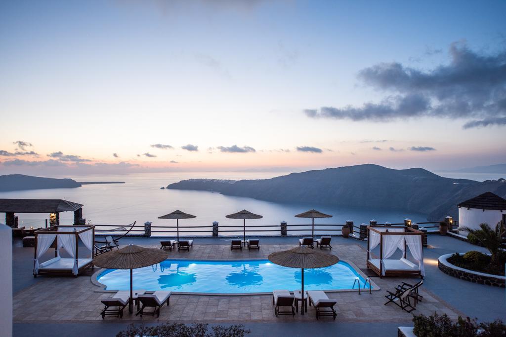 I caratteristici alloggi vantano una confortevole area salotto e una terrazza o un balcone privato con splendide viste su Santorini e sulla caldera.