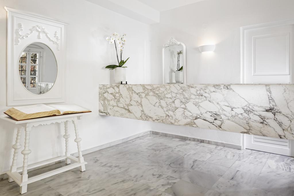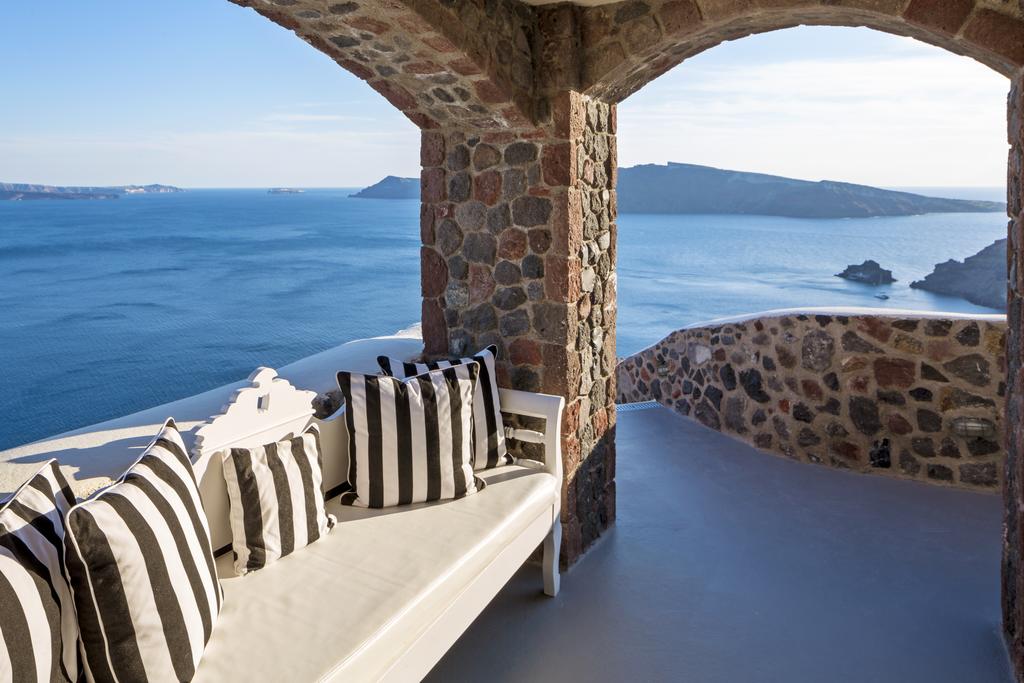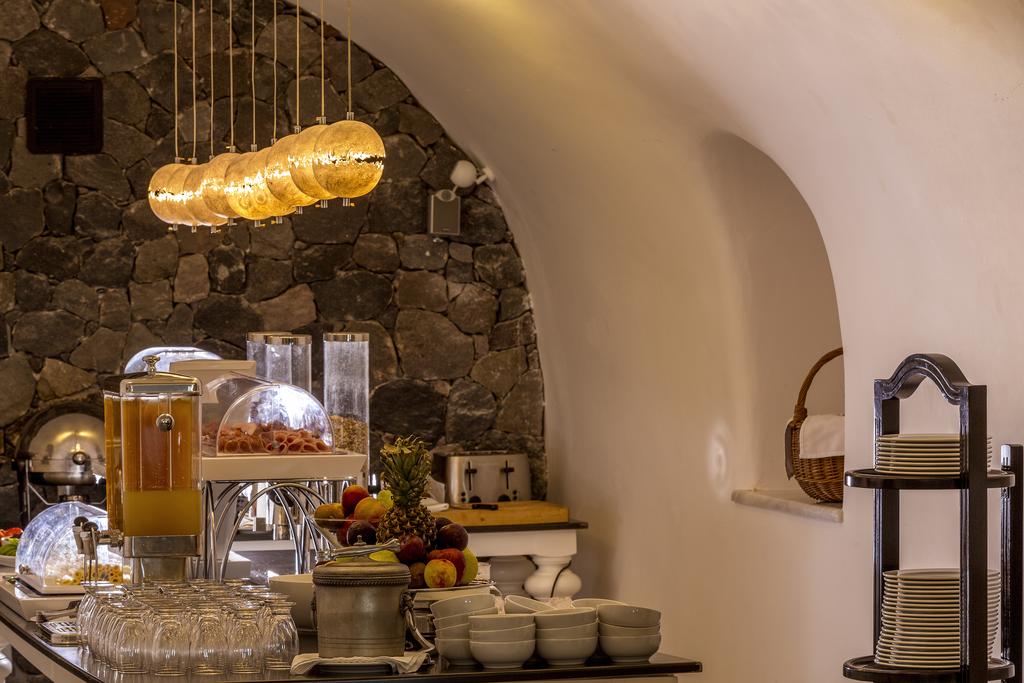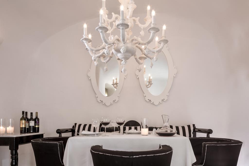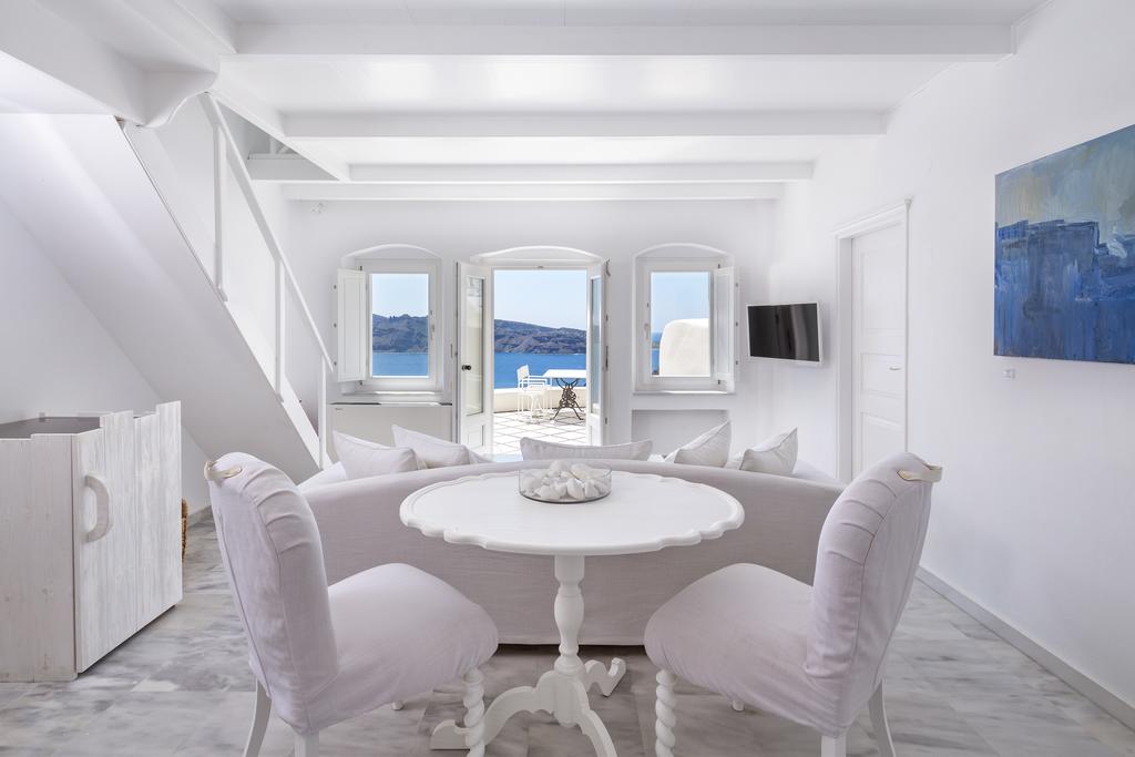 Il Canaves Oia Suites & Spa propone ampie e lussuose suite e camere ben arredate con mobili d'epoca e oggetti d'arte.