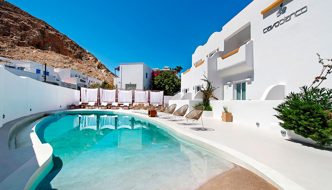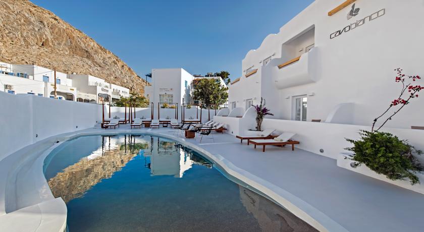 Sito nella località di Kamari, il Cavo Bianco è una struttura in classico stile cicladico che mette a disposizione di tutti i suoi ospiti : una piscina, una terrazza solarium con lettini, un ristorante tradizionale, una palestra, un centro benessere, una reception aperta 24 ore su 24 e la connessione Wi-Fi gratuita in tutti gli spazi.